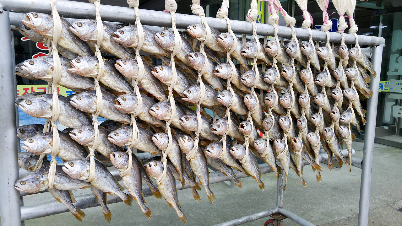 간척지에서 나오는 길에 보이는 가게는 대부분 굴비 가게이다.