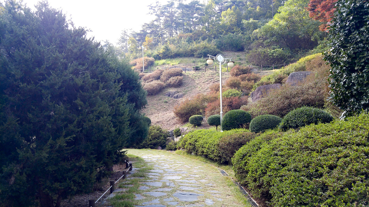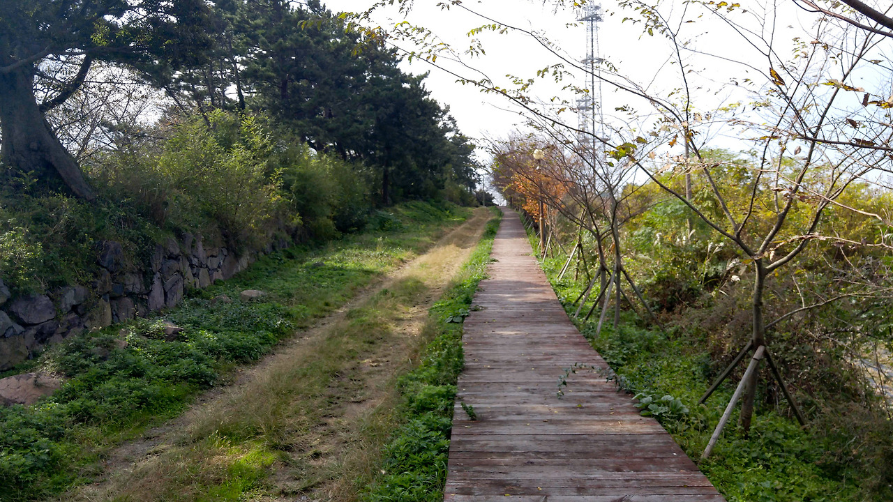 산책로는 그냥 등산로에 멍석을 깔아놓은 수준이다. 중간에 무덤도 있다.