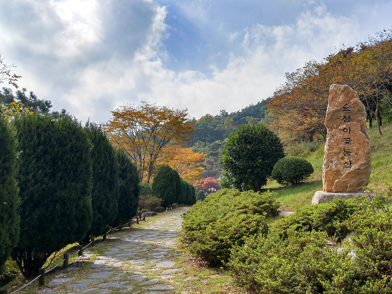 숲쟁이 꽃동산으로 들어간다. 시기가 시기인 만큼 꽃은 없고 단풍만 그득하다.