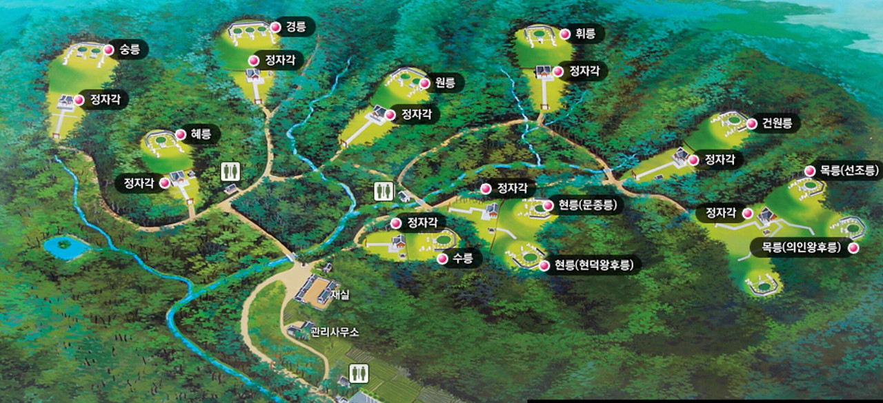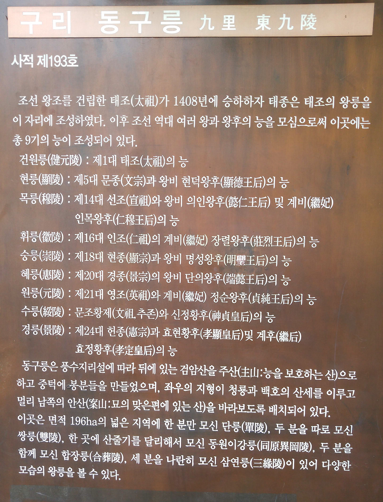동쪽에 있는 아홉 개의 왕릉이라 하여 동구릉이라 한다.