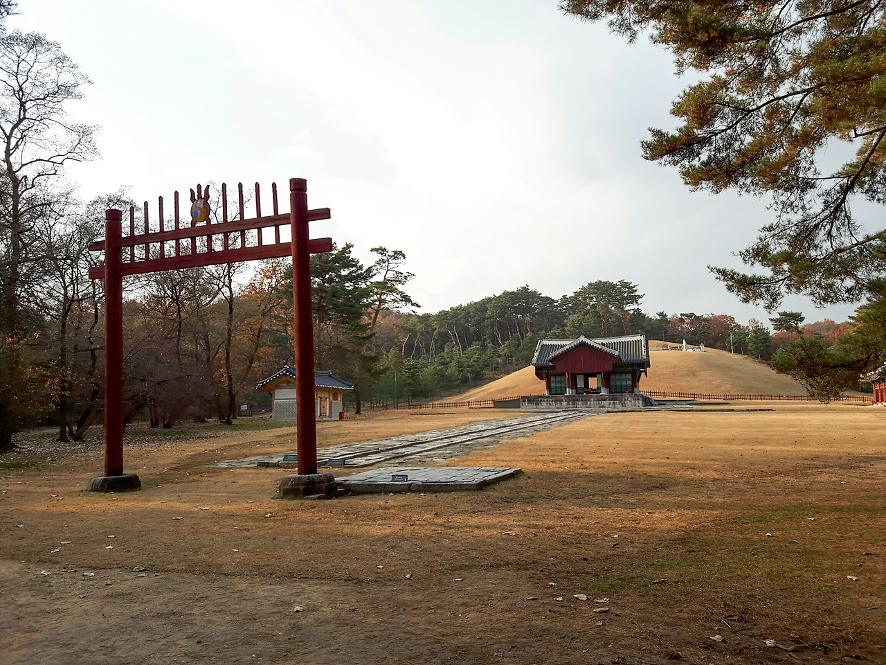 원래는 왕릉의 빨간 울타리 너머는 출입이 금지되어 있는데 이날은 단체 견학으로 잠깐 개방되어 올라가보았다. 운이 좋았다.
