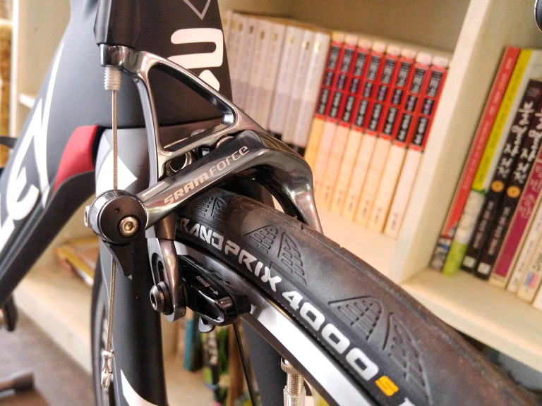 로드바이크에 사용하는 폭이 좁고 공기압이 높은 타이어는 MTB용 타이어에 비해서 지면에 접촉하는 부분이 훨씬 좁아서 공기저항과 더불어 자전거가 달릴 때 생기는 또 다른 저항인 구름 저항(rolling resistance)도 훨씬 적다. 구름 저항에 대해서는 다음에 다시 이야기하도록 하고 일단 구름 저항이 적으면 자전거를 달리게 하는데 드는 힘도 그만큼 적다고 생각하면 된다.