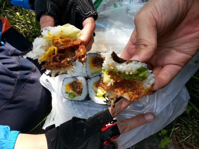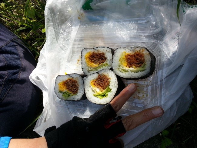 오후 3시 정도 되니 배가 고픕니다. 점심 도시락과 같이 사놓은 소갈비 김밥을 꺼냅니다.
