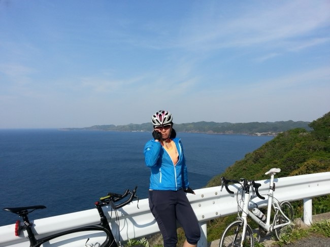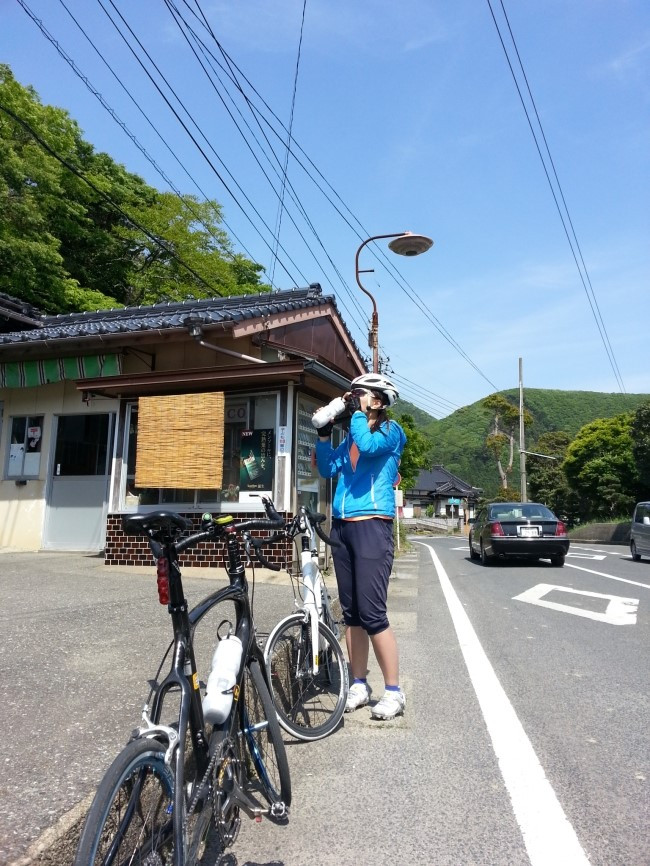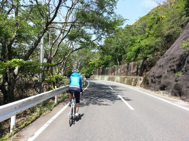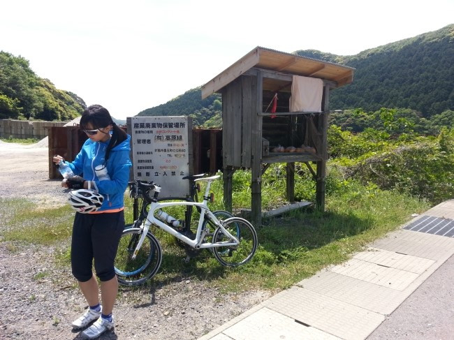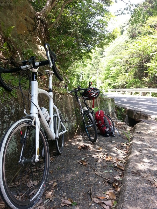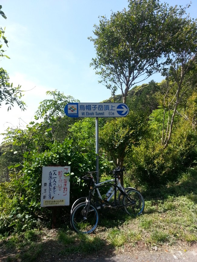 에보시 산 전망대로 가는 길은 고도는 높지 않지만 대마도에서의 이번 코스 중 가장 가파릅니다. 지니님이 유일하게 끌바한 구간이지요. 쉬엄쉬엄 올라가서 잠깐 쉽니다.