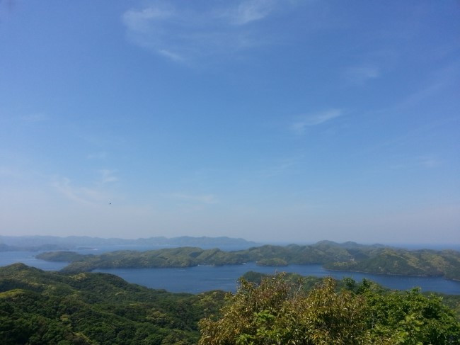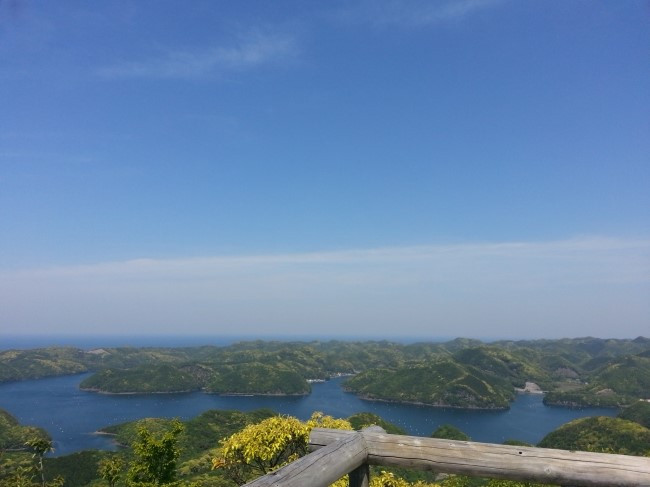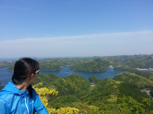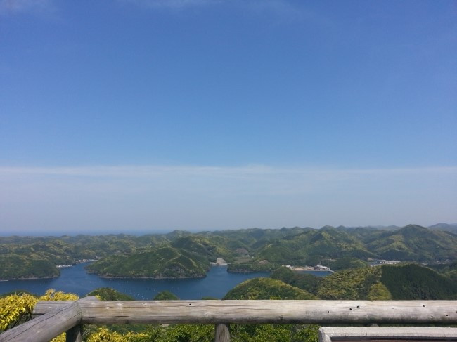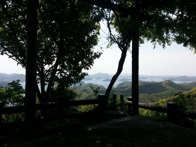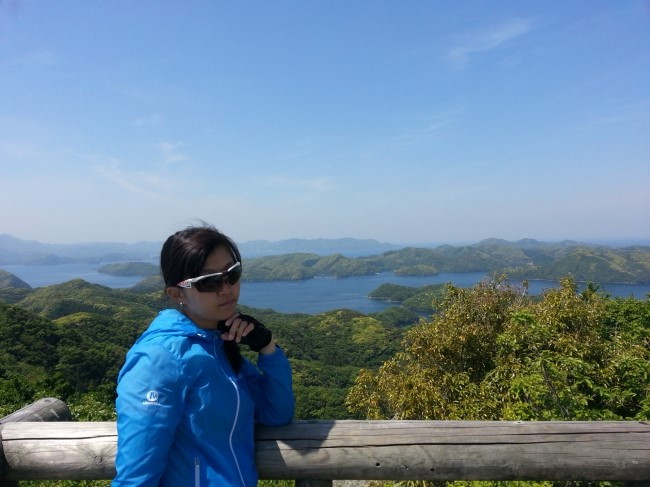 자전거를 두고 계단으로 전망대에 올라가 봅니다. 에보시 산 전망대는 아소만의 멋진 풍경을 바로 지척에서 잘 볼 수 있는 곳입니다.