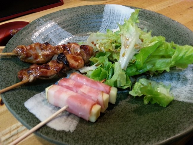 소스가 참 맛있는 닭꼬치와 베이컨 치즈
