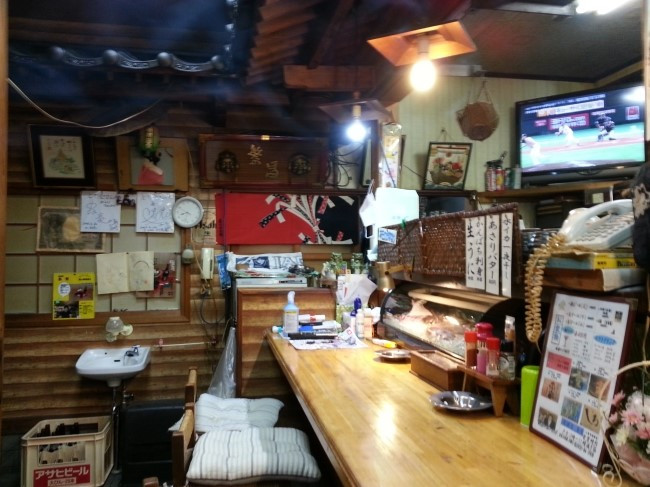 가게 전경입니다. 뒤쪽의 테이블에는 동네 아저씨들이 술판을 벌이고 옆의 별실에는 가족단위로 식사하러 오는 조그만 동네 술집입니다.