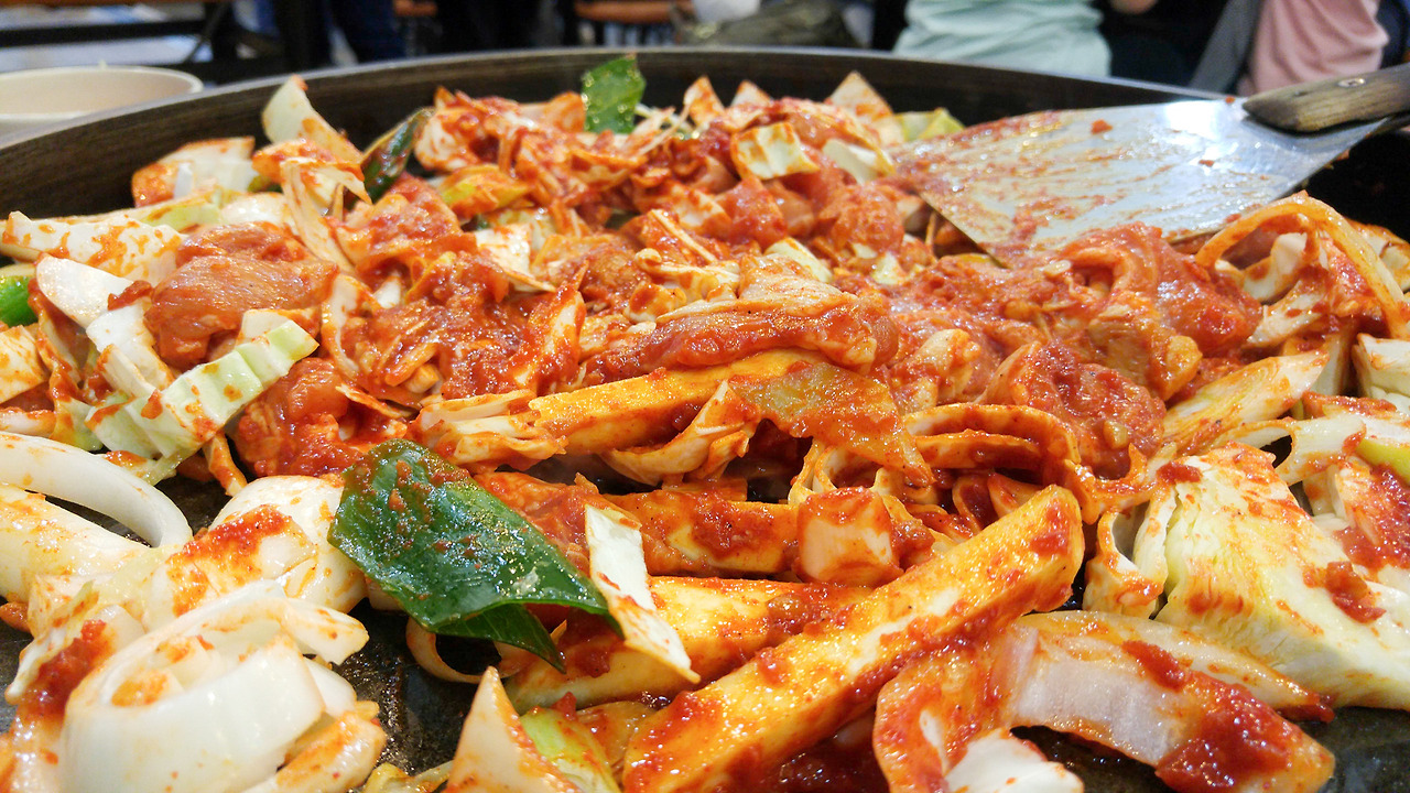 점심에 햄버거를 먹어서 금방 출출해지는데 마침 후평동 닭갈비집들을 지나가는 루트이다. 원래 가던 집은 사람들이 너무 줄을 서 있는 데다가 2층에서 먹기엔 자전거가 불안하니 오랜만에 그 옆집으로 간다.