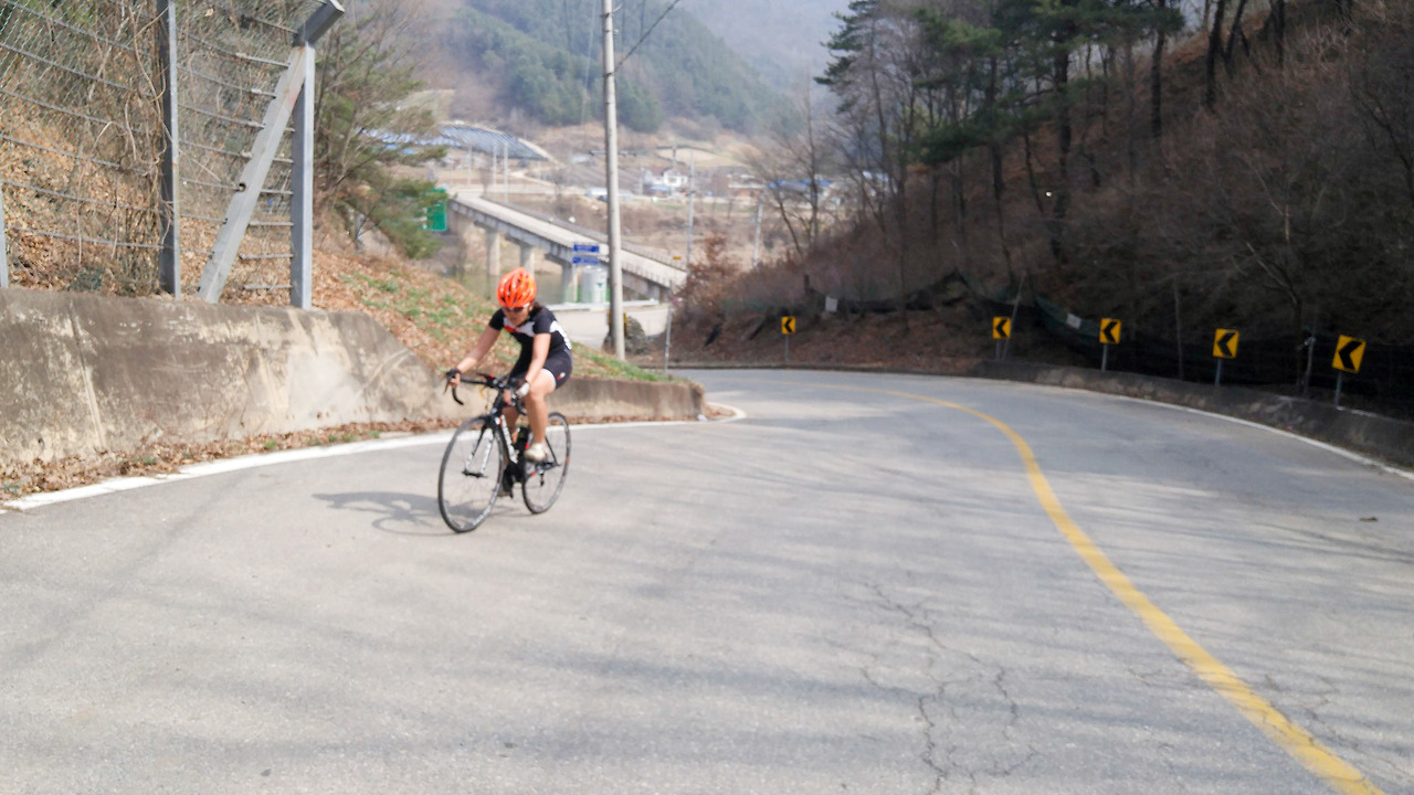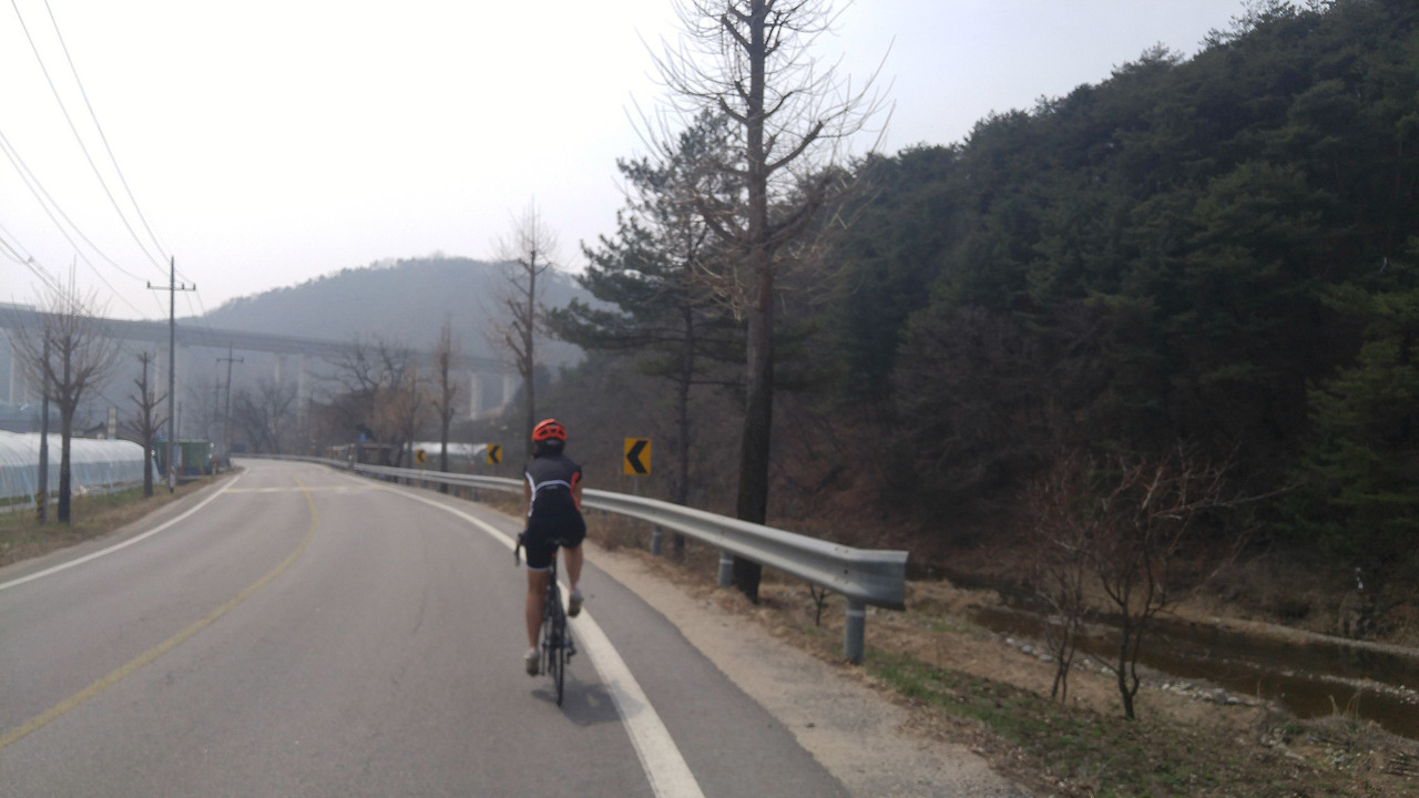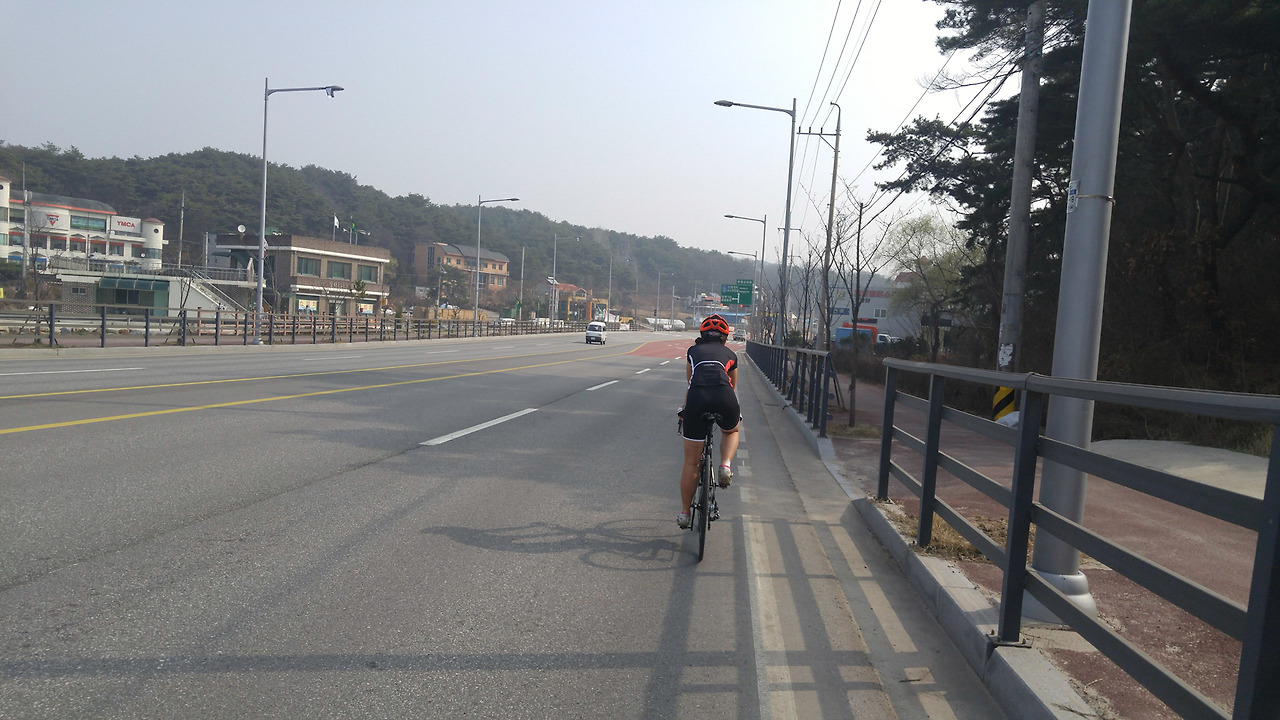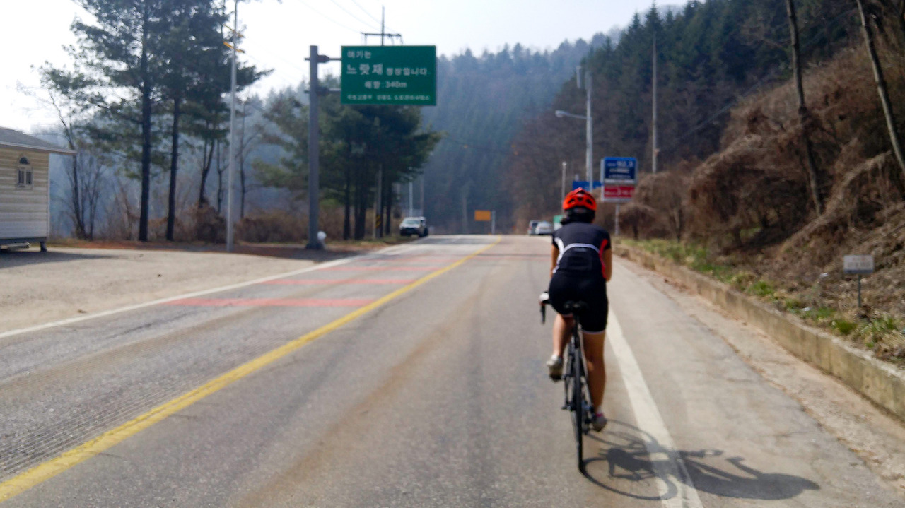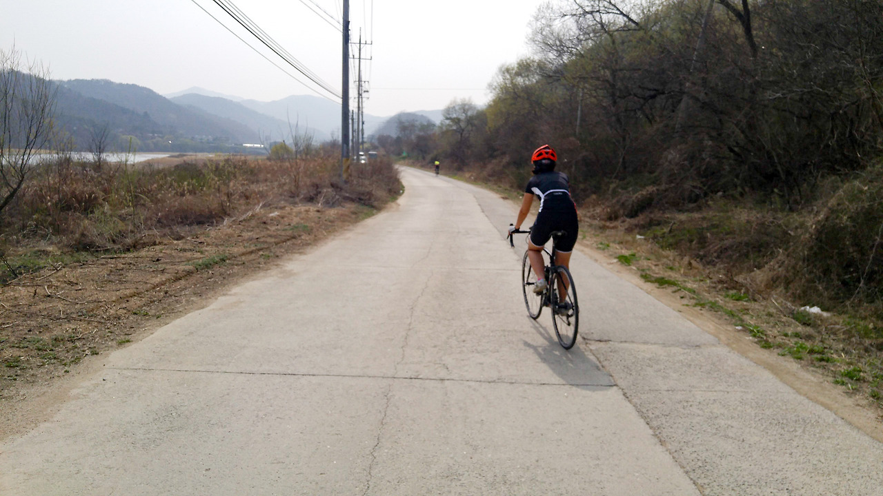 남노일 유원지 가기 전, 지난번에도 우릴 괴롭혔던 짧은 급경사 오르막길이 나타난다. 실제로 그리 가파르지는 않지만 평지를 달리다가 갑자기 마주치면 상당히 가파르게 느껴진다.