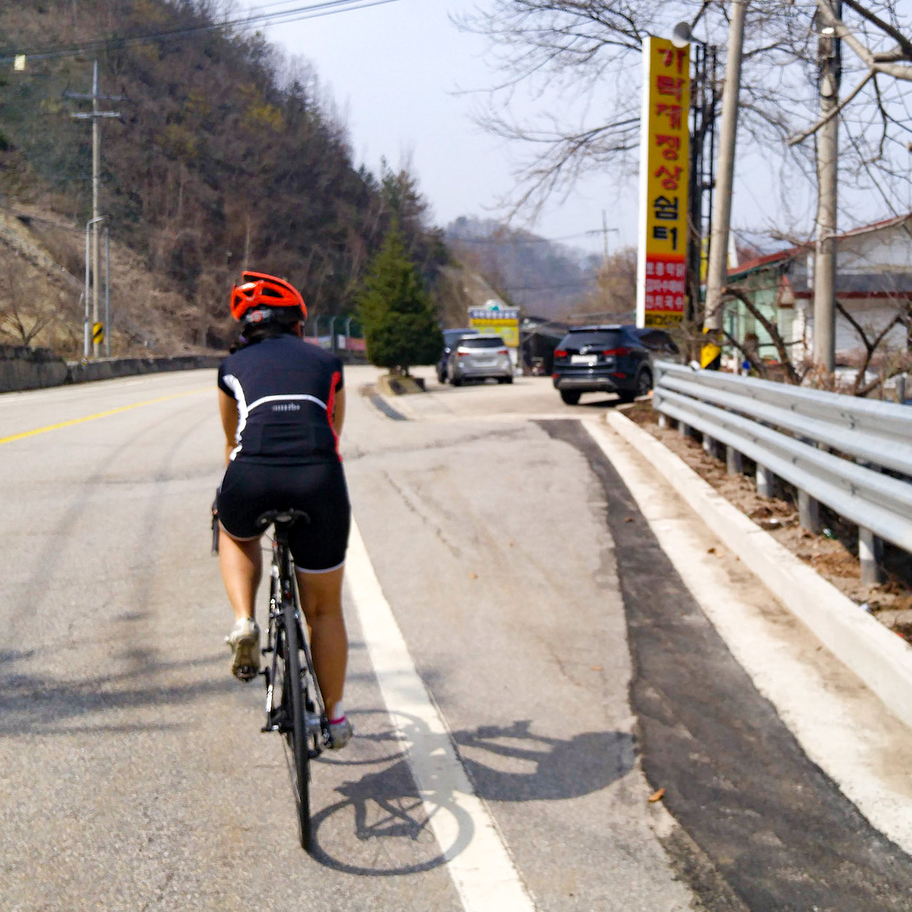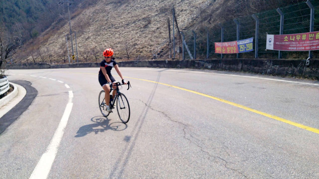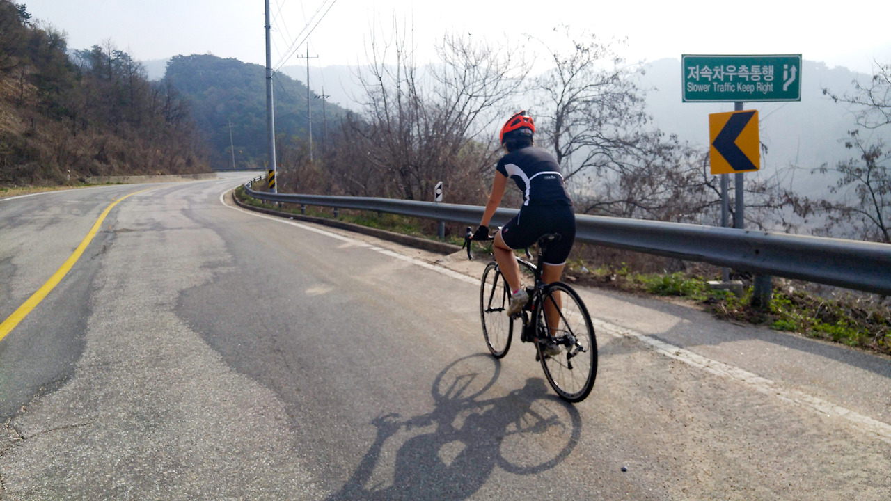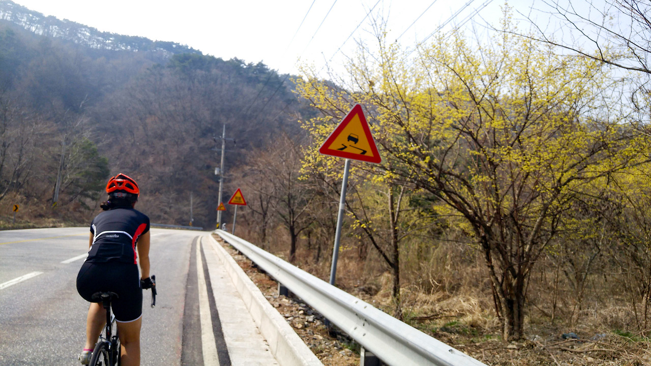 남노일 유원지 가기 전, 지난번에도 우릴 괴롭혔던 짧은 급경사 오르막길이 나타난다. 실제로 그리 가파르지는 않지만 평지를 달리다가 갑자기 마주치면 상당히 가파르게 느껴진다.