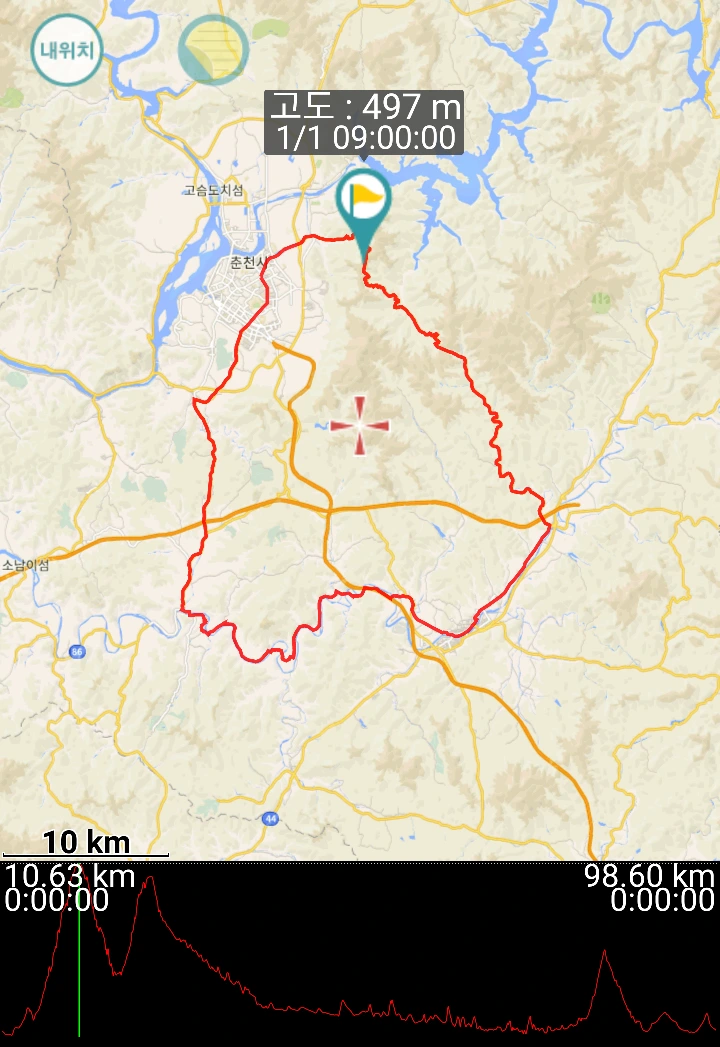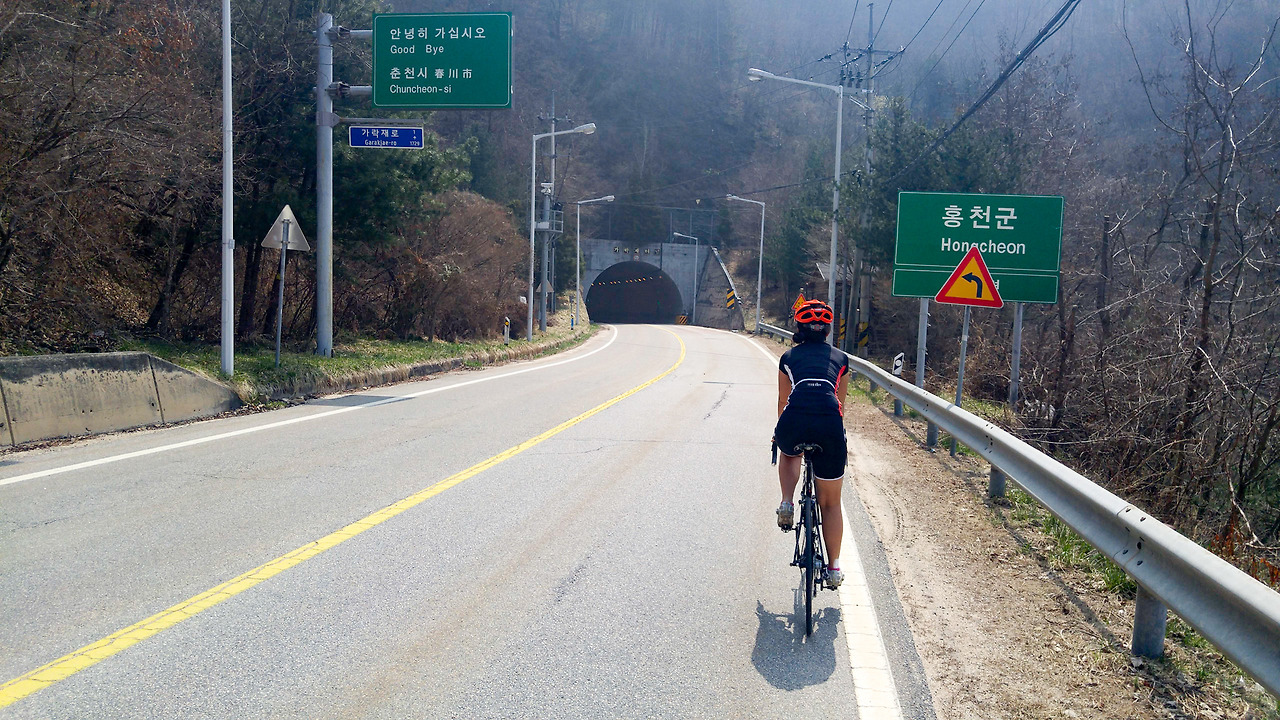 춘천을 포함해서 강원도 영서지방은 산이 많고 임도가 잘 발달되어 있어서 산악자전거를 즐기기에는 아주 좋지만 고속도로나 국도 같은 큰 길이 산골짜기로 나있다 보니 도로자전거로 갈 수 있는 코스는 어느 정도 한정된다. 그중에서 춘천 현지 동호인들이 자주 다니는 코스로 춘천에서 홍천을 빙 둘러 다녀오는 코스가 있다.