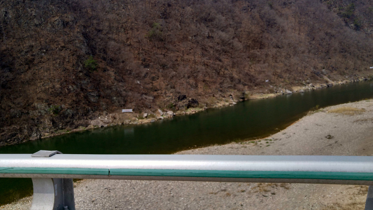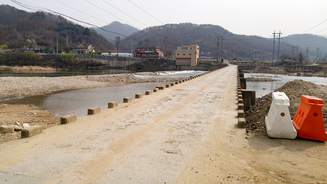 홍천 온천 표지판을 따라서 5번 국도를 벗어나면 도사곡교에서 홍천강과 다시 만난다.