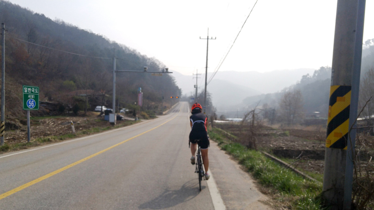 일반 국도 56번 표지판이 보인다. 고개를 넘어가야 하는 길이니 이 방향에서 홍천까지 어차피 길은 하나뿐이다. 길을 잃거나 확인해야 할 필요도 없어서 좋다.