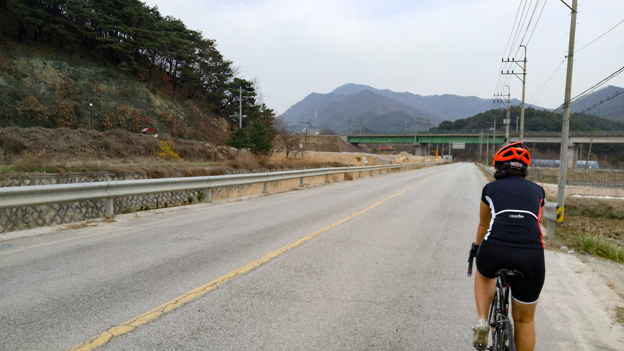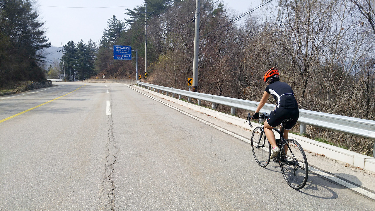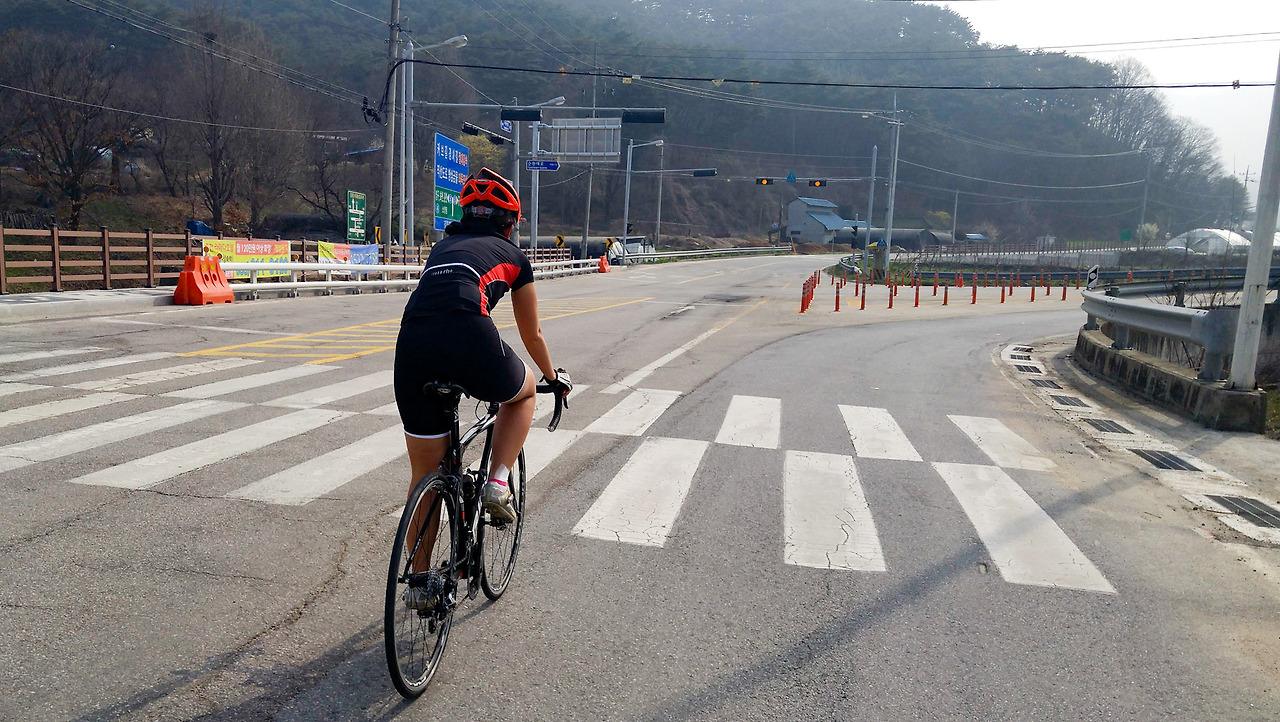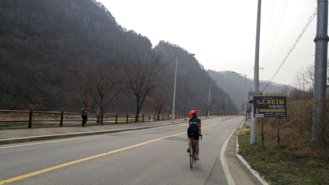 밥 대신 빵을 먹었으니 저녁을 일찍 먹을 것 같다. 아직 50km는 더 달려야 하니 슬슬 출발한다. 이제 5번 국도를 잠깐 따라간다. 그냥 5번 국도를 쭉 따라가면 작은 고개 3개 정도를 넘어서 춘천까지 바로 갈 수 있긴 하지만 오늘은 100km 정도 타기로 했다.