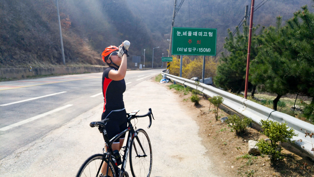 달리다 보니 드디어 터널 앞이다. 느랏재 정상은 터널 너머지만 후미등을 켜야 하니 잠시 멈춰 물 한 모금 마신다.