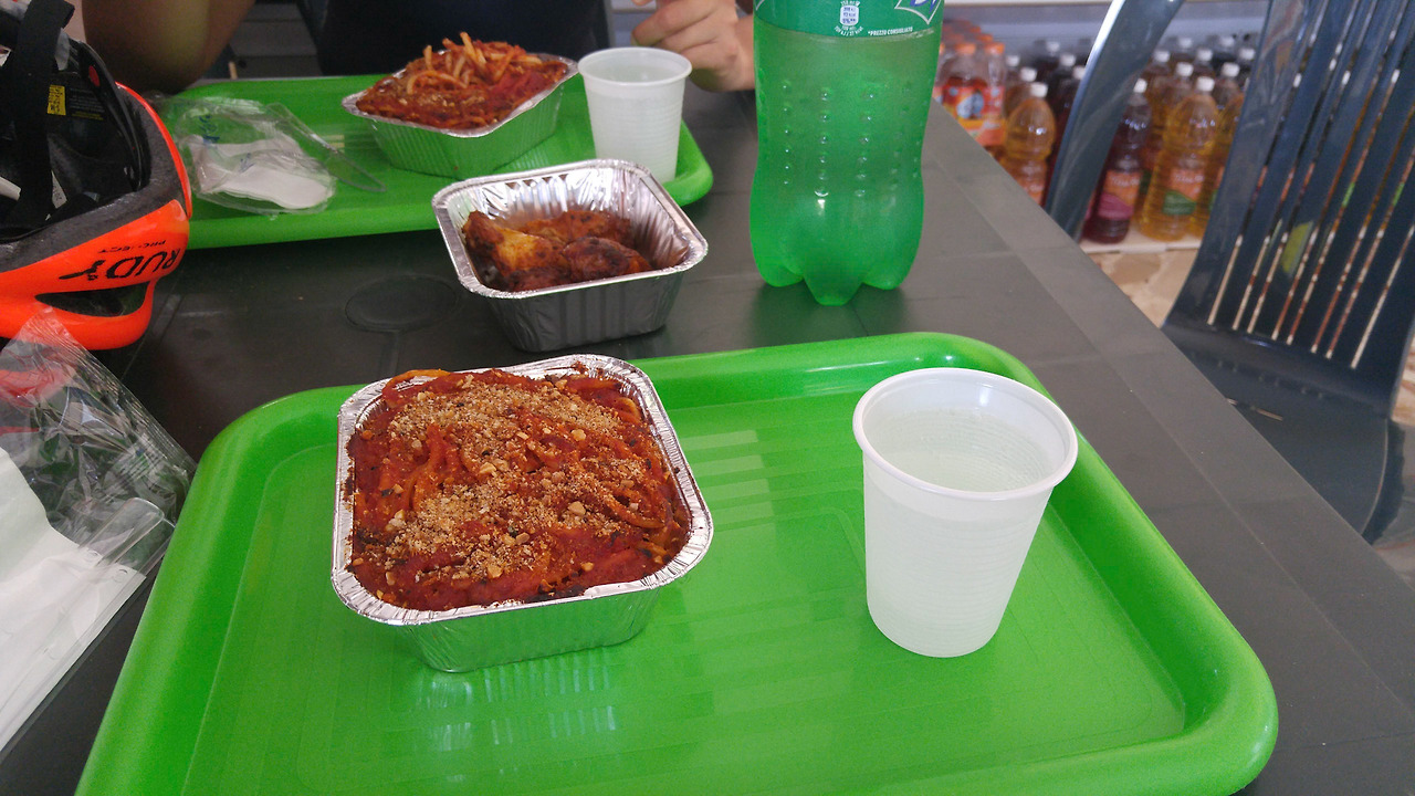 가게 아주머니가 만든 스파게티와 닭고기를 시원한 스프라이트 1.5L를 주문해서 먹는다. 생선알이 들어간 스파게티는 퉁퉁 불어있었으나 먹을만 했고 말은 안 통하지만 음식도 데워주고 이것저것 챙겨주시는 아주머니가 고맙다. 가격도 싸다.