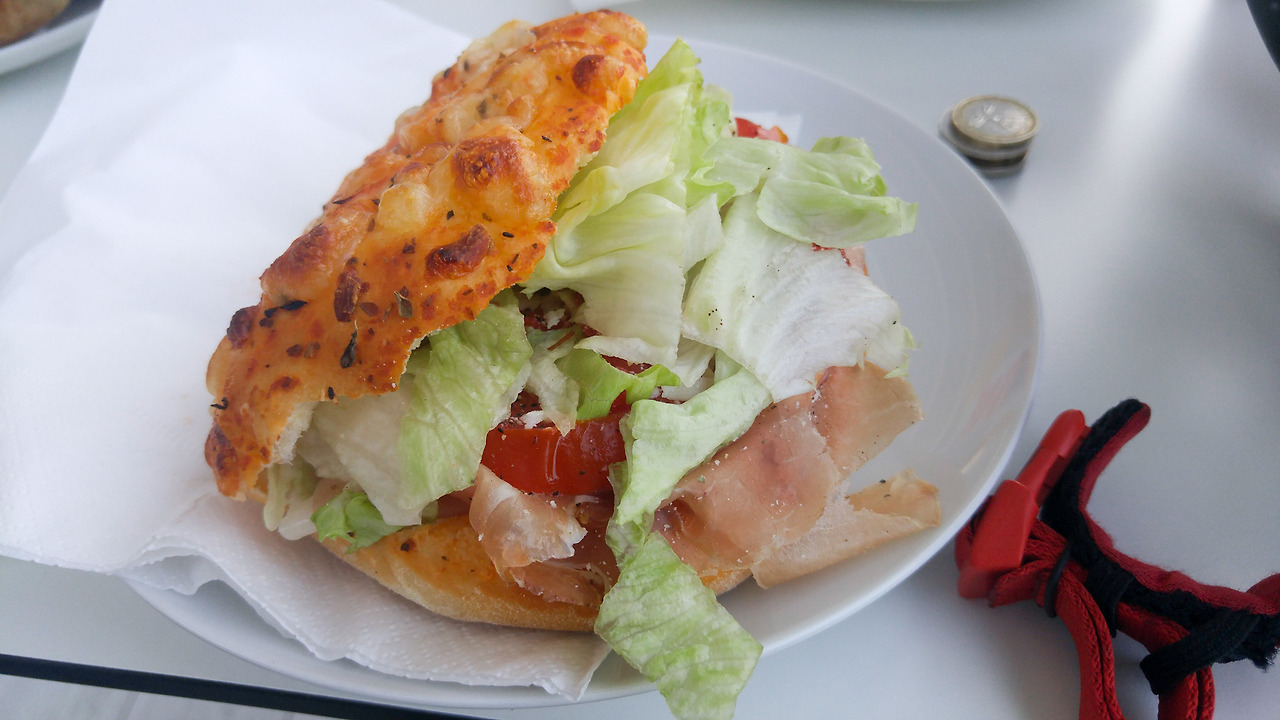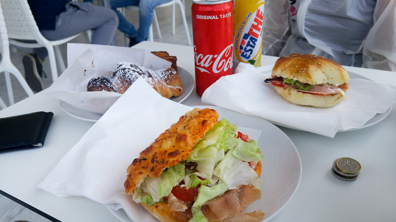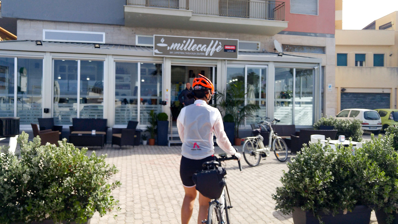 계속 달려서 옆 마을인 트리스시나(Triscina)의 출구에 다다른다. 앞으로 언덕길의 연속이라 체력이 떨어지기 전에 점심을 해결해야 한다. 이제 정말 식당을 못 찾으면 돌아서 문 열었던 몇 안되는 식당으로 가야 하는데 눈 앞에 이것저것 다 파는 가게가 나타난다. 우리나라식으로는 편의점 같은데...