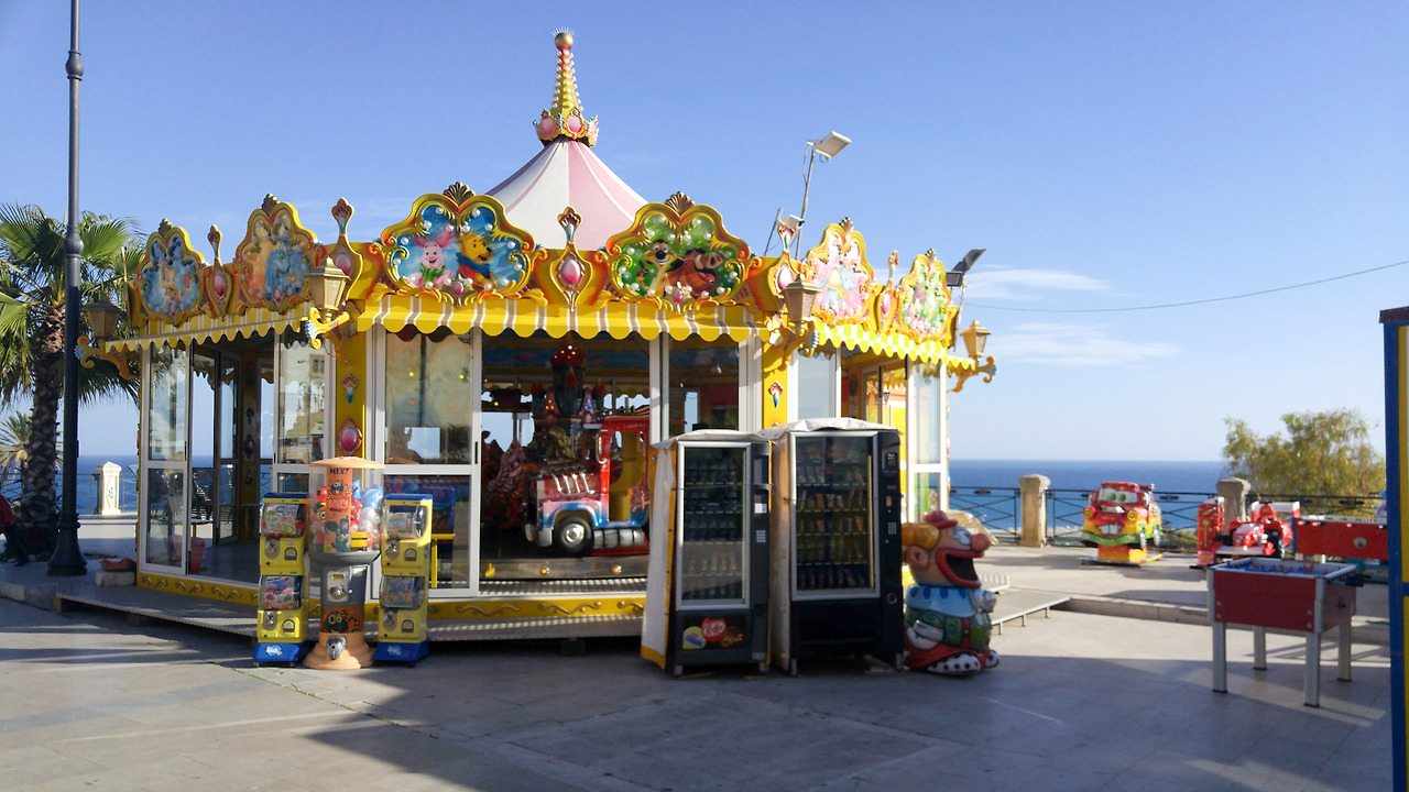 광장에는 회전목마 비슷한 탈 것이 있다.