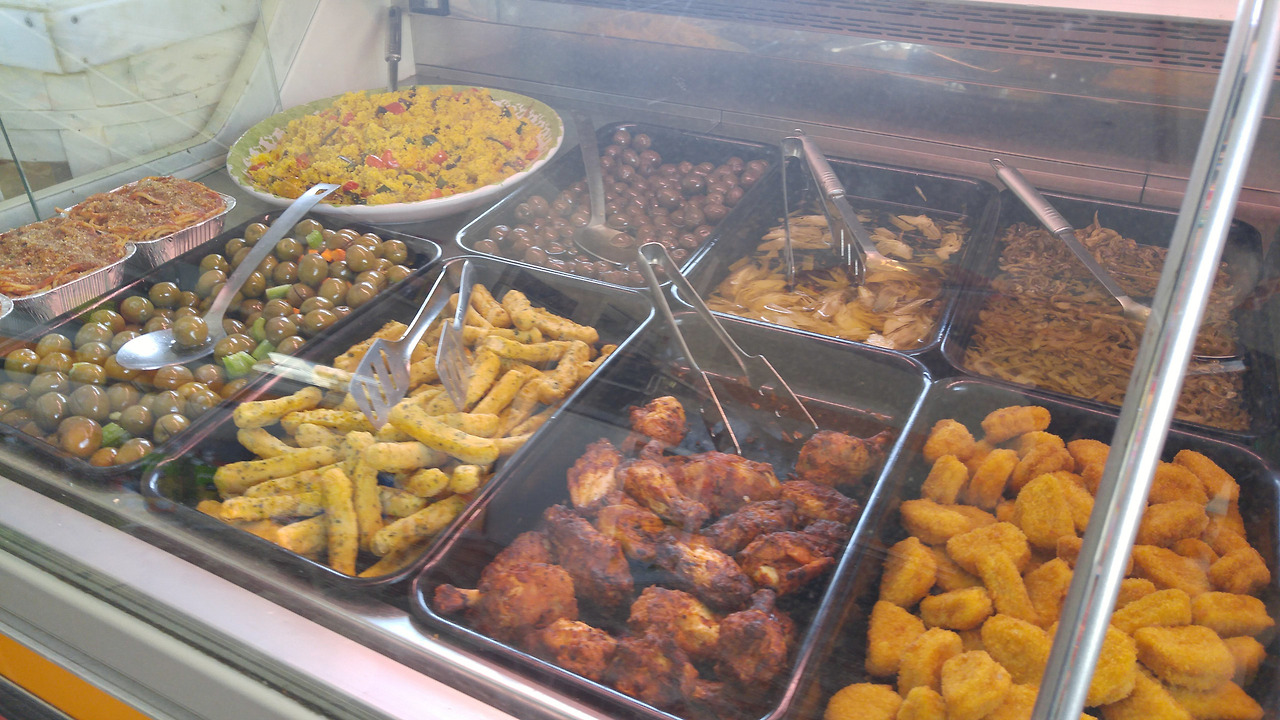 안에는 식료품이나 조리된 음식들도 있고 잡다하게 뭔가 많다. 닭고기에 올리브에 심지어 쿠스쿠스까지 있다.