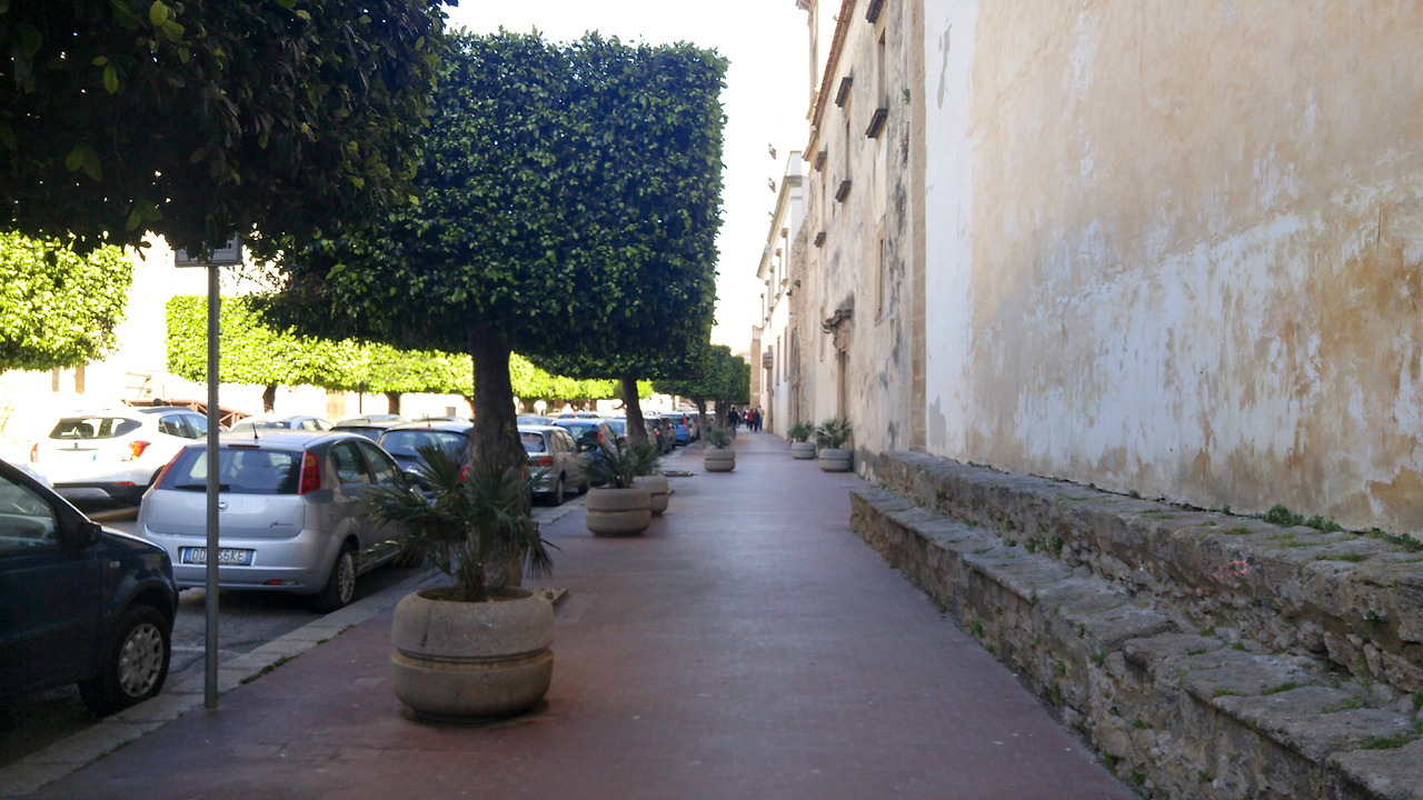 체크인도 했으니 당장 시원한 맥주가 땡긴다. 얼른 맥주를 마실만한 가게를 찾아나선다. 시칠리아의 도시 안쪽 가로수들은 네모네모 멈뭄미의 저주를 받았는지 이렇게 네모네모하게 커트되어 있다.