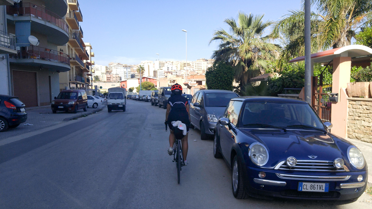 샛길을 어려움 없이 달려서 마자라 델 발로(Mazara del Vallo)라는 마을에 도착했다.