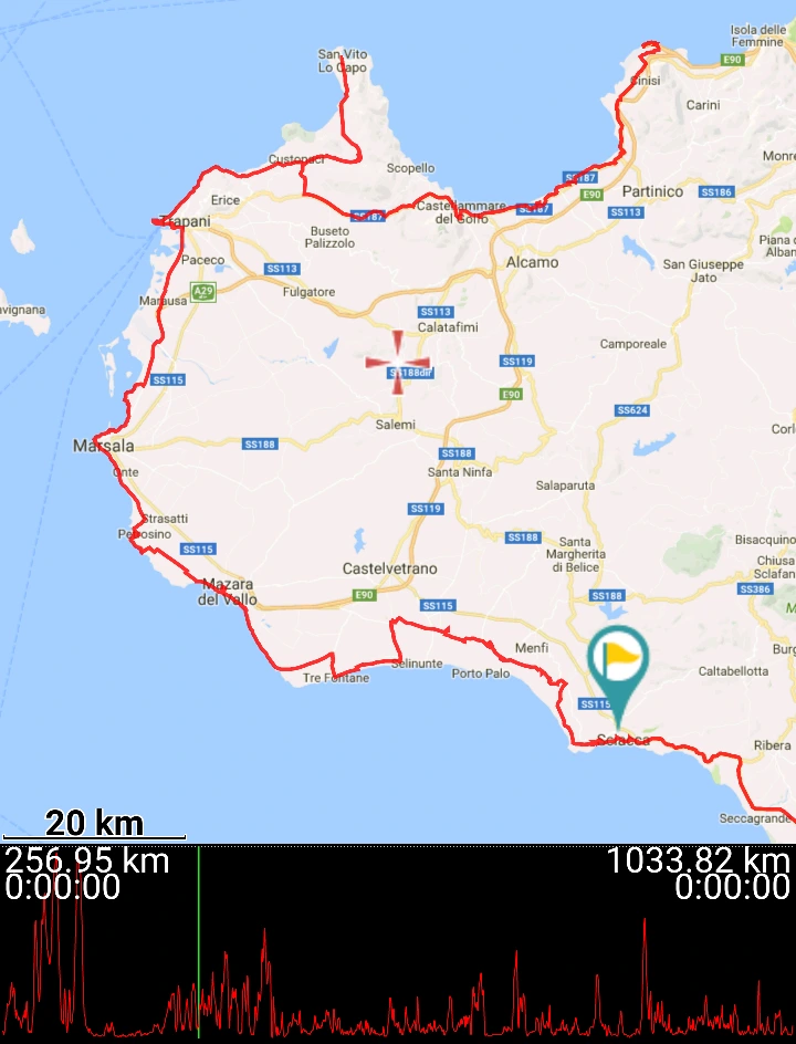 어제에 이어 오늘도 120km를 달렸다. 시칠리아는 시시각각으로 변하는 아름다운 풍경 덕에 자전거 타는 것이 너무 좋은 섬이다.