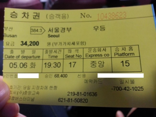 그리고 부산 노포터미널에서 예약해둔 서울행 승차권을 발권해서 무사히 서울로 돌아옵니다.
