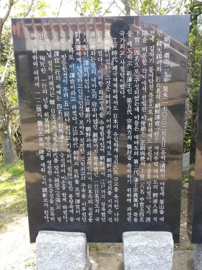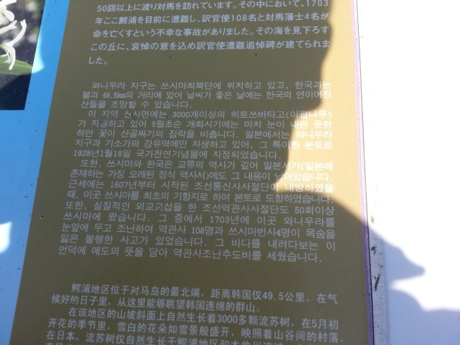 단순히 한국이 보이는 전망대가 아니라 조선역관사 사절단이 이곳을 거쳐서 일본으로 갔다고 합니다. 그중에 사고를 당한 이들도 있어 그들을 위한 추모비도 세워져 있습니다.