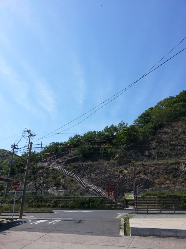 관광객들이 많이 사진 찍는 신사를 배경으로 한 컷 찍고... 출항 시간이 되었으니 올라가 보진 않습니다.