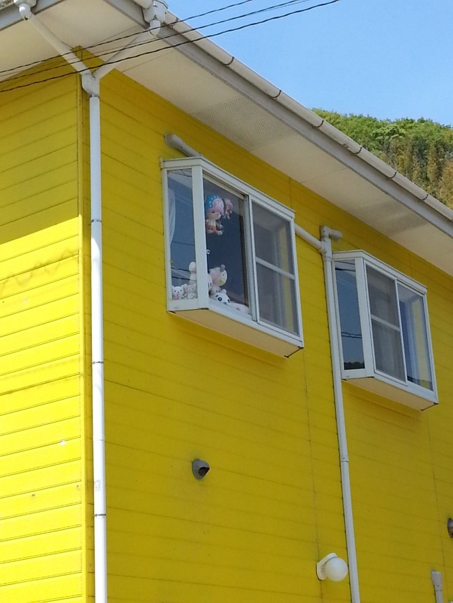 노란 집 2층에 인형이 잔뜩 장식되어 있네요. 귀여워서 찍어봅니다.