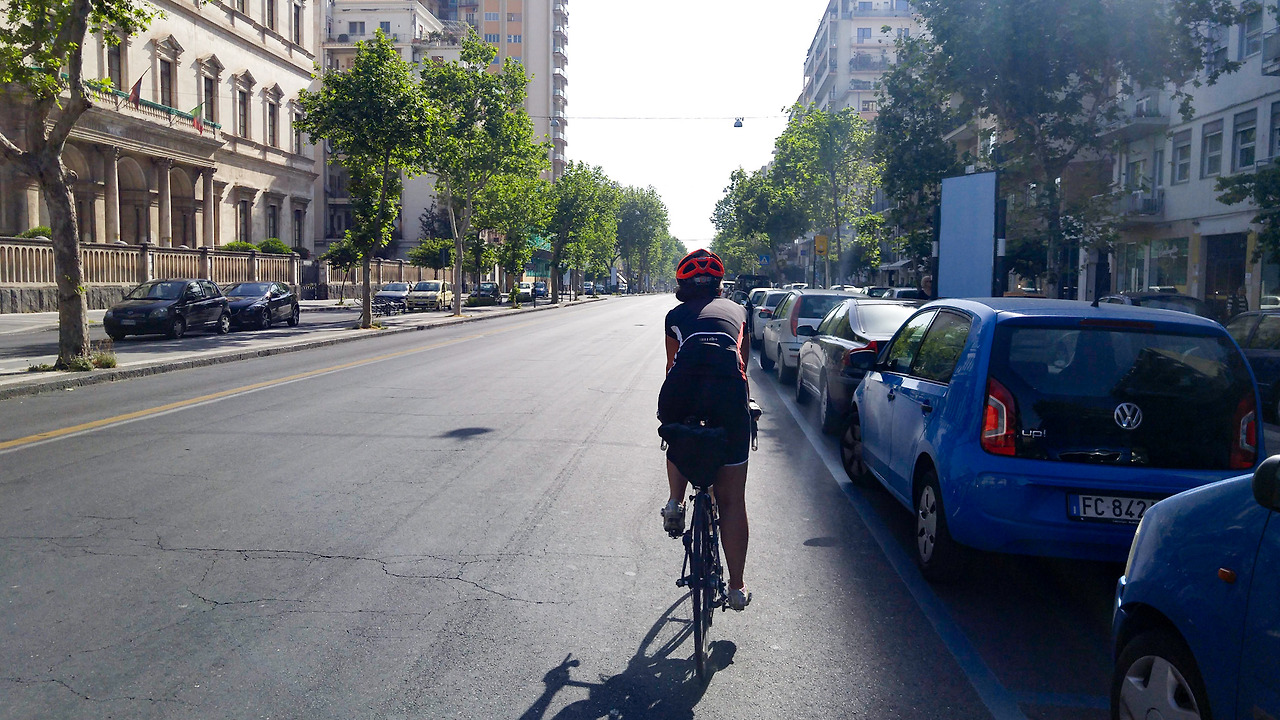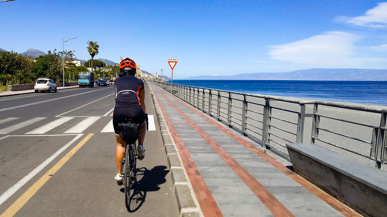 카타니아 센트랄레 역을 지나서 해변으로 나오면 시내를 벗어날 때까지 잠깐이나마 편하게 달릴 수 있는 자전거도로가 나타난다.