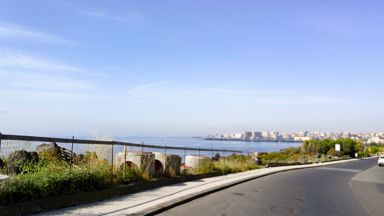 아치레알레(Acireale)라는 동네를 지나면 SS114번 도로는 잠깐이지만 해변에서 떨어져서 내륙을 들어가게 된다. 갈림길에서 SP2 도로를 타고 한적한 해안 도로로 내려간다.