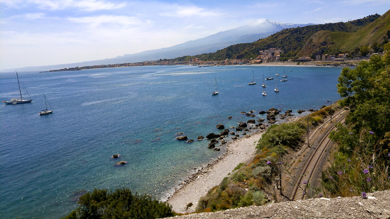 에트나 화산을 대신해서 우리 눈 앞에 나타난 것은 시퍼런 에트나 해협 너머의 이탈리아 본토이다.