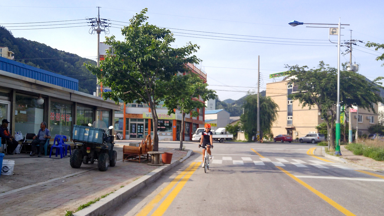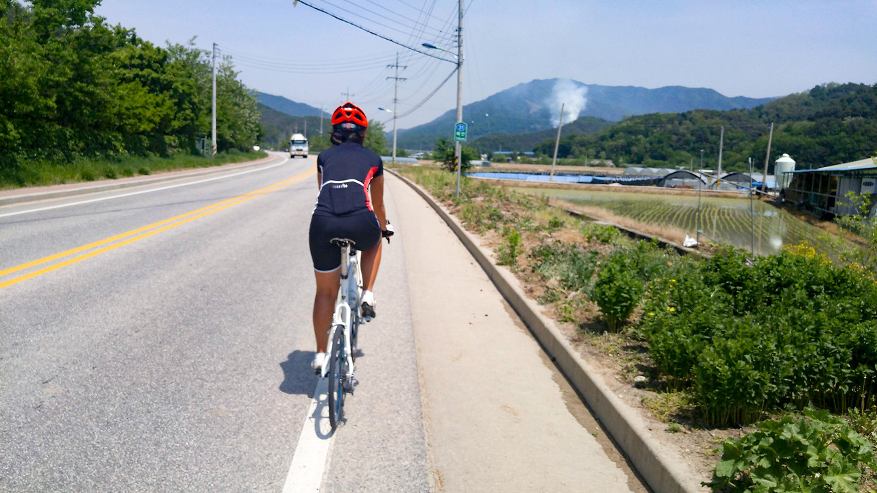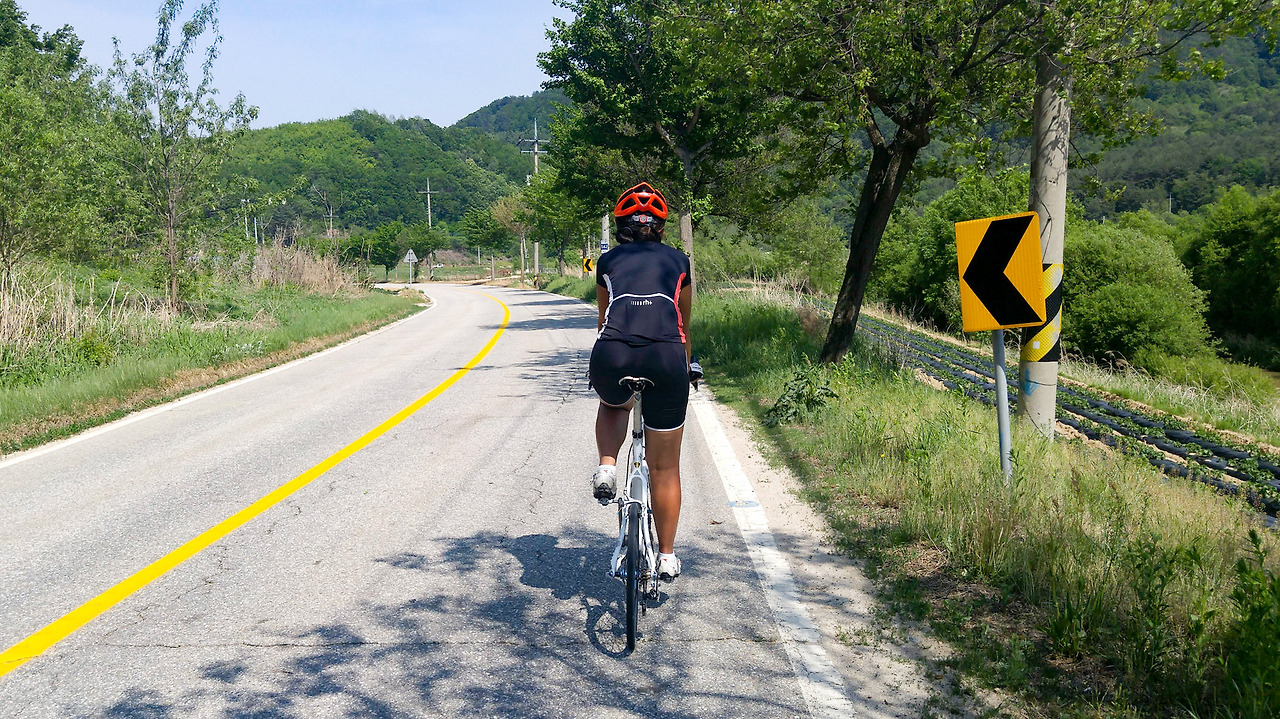 동면 들어가는 길은 꽤 넓어서 도로 옆의 갓길도 넉넉하다. 편하게 달린다.