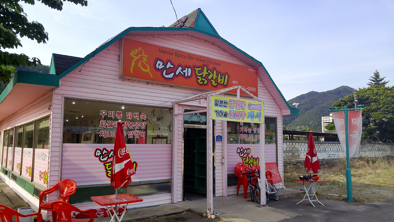 원통에서 늦은 점심을 먹으려 했는데 제대로 된 식당이 안 보인다. 찾다찾다 닭갈비집에 가서 막국수를 먹기로 한다.