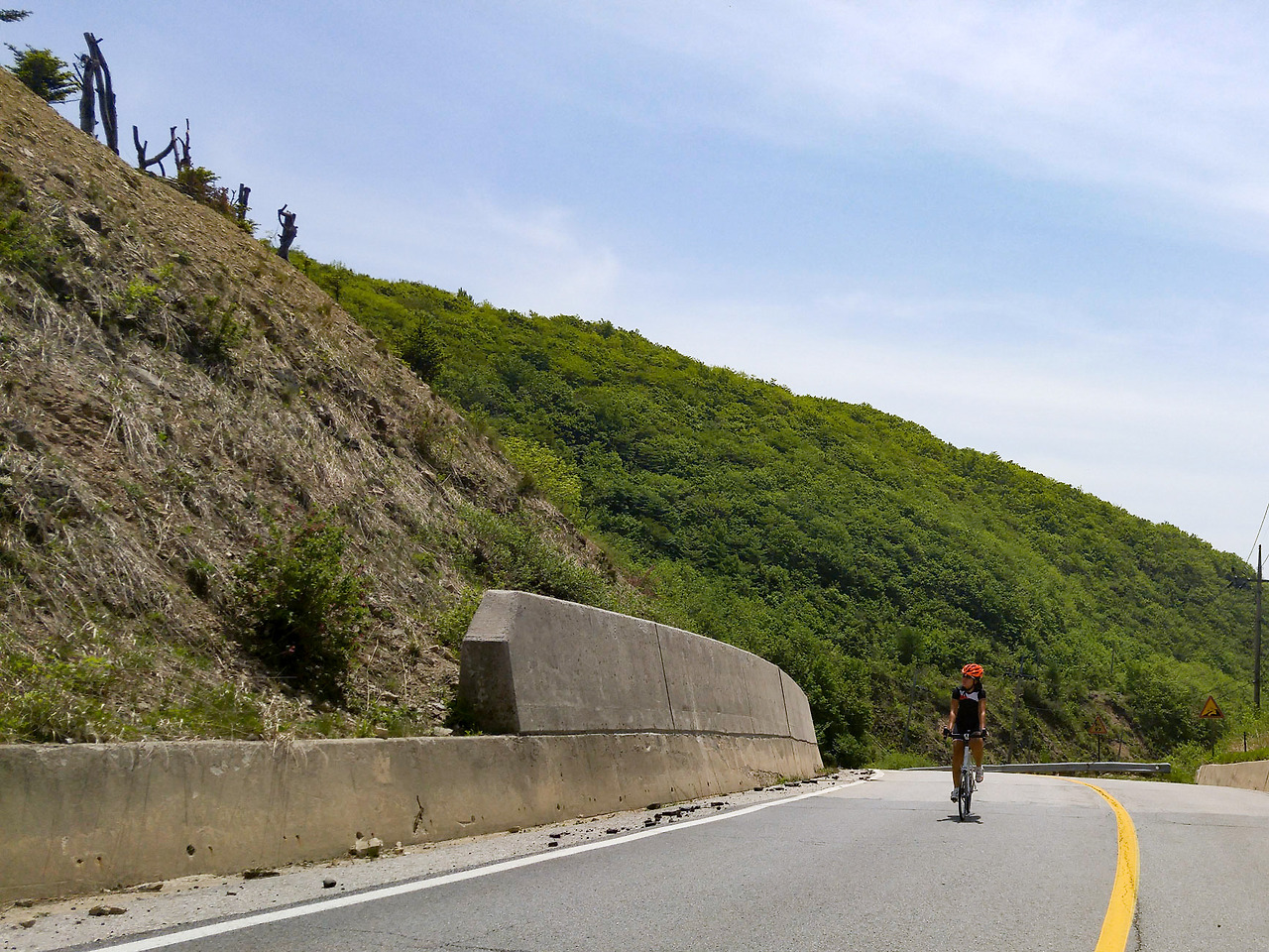 오늘은 출발부터 계속 군부대가 많은 날이다. 이런 지역은 중간중간 도로 차단 시설들이 있다.