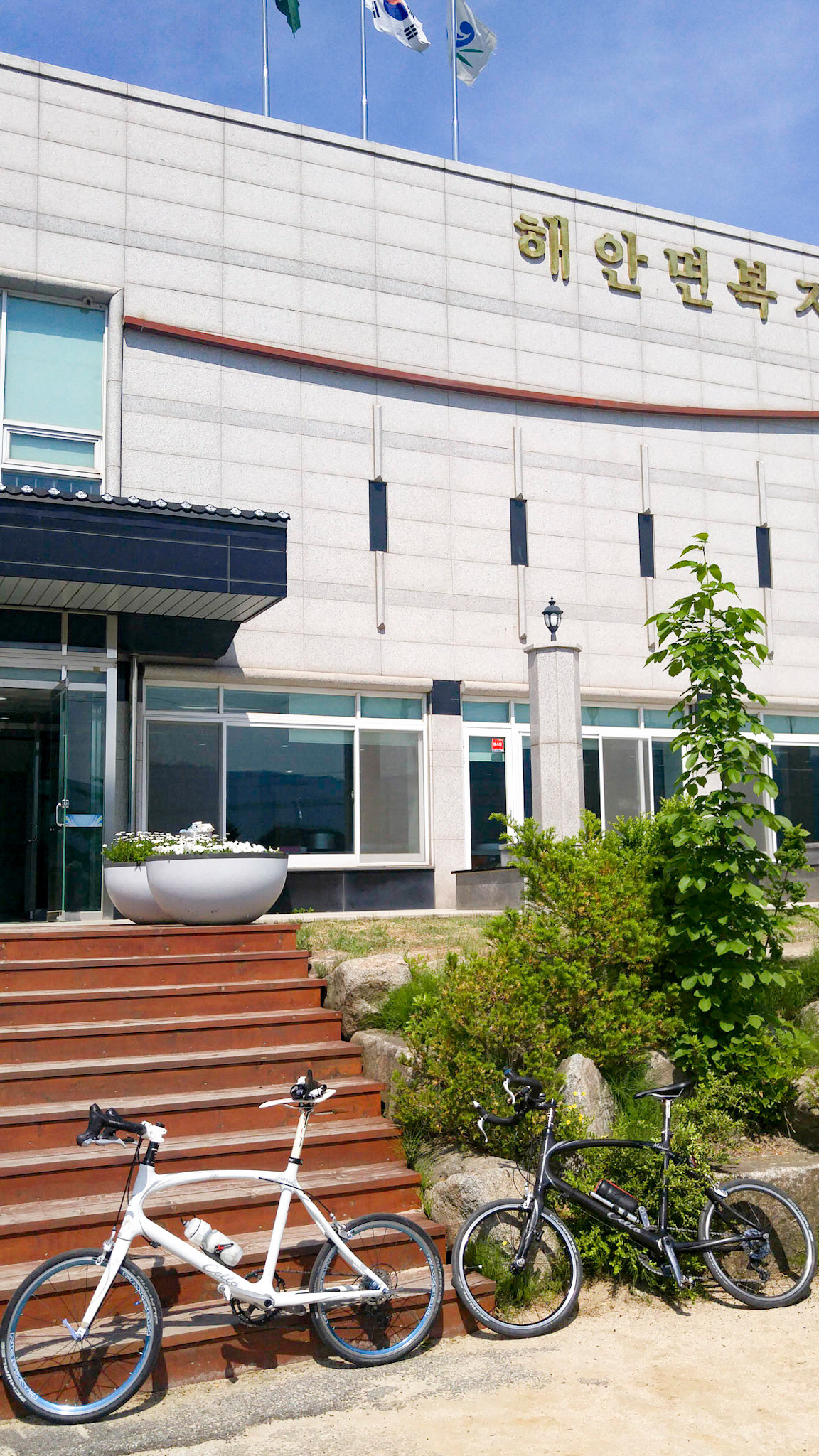 해안면에 들어가니 하나로마트가 있다. 우리나라는 시골 구석에 제대로 된 슈퍼가 없는 마을에 가더라도 하나로마트가 있는 곳이 많으니 음료나 간식 보급이 편하다. 아이스크림을 사다 근처에 앉아 먹으면서 잠시 쉰다.