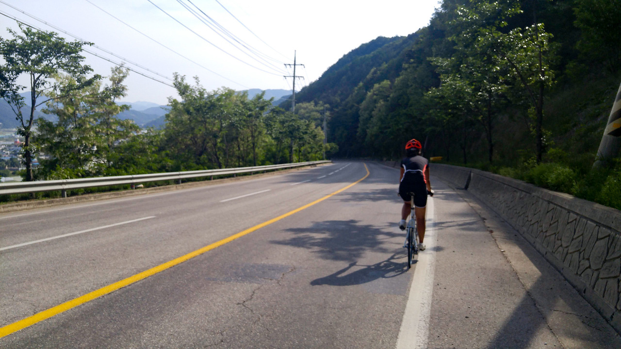 배가 부르니 자전거를 더 타기는 싫은데 아직 오늘 일정이 끝난 것이 아니다. 차를 세워둔 양구군 북면으로 가려면 광치령을 넘어야 한다.