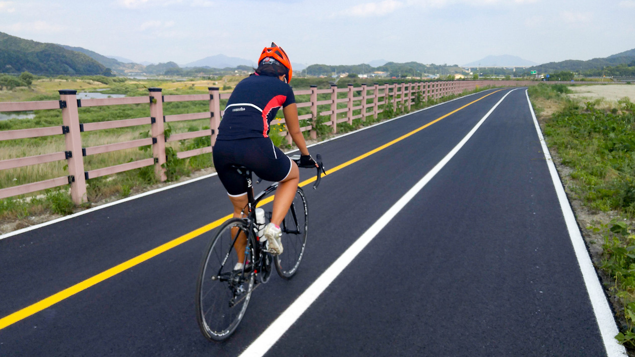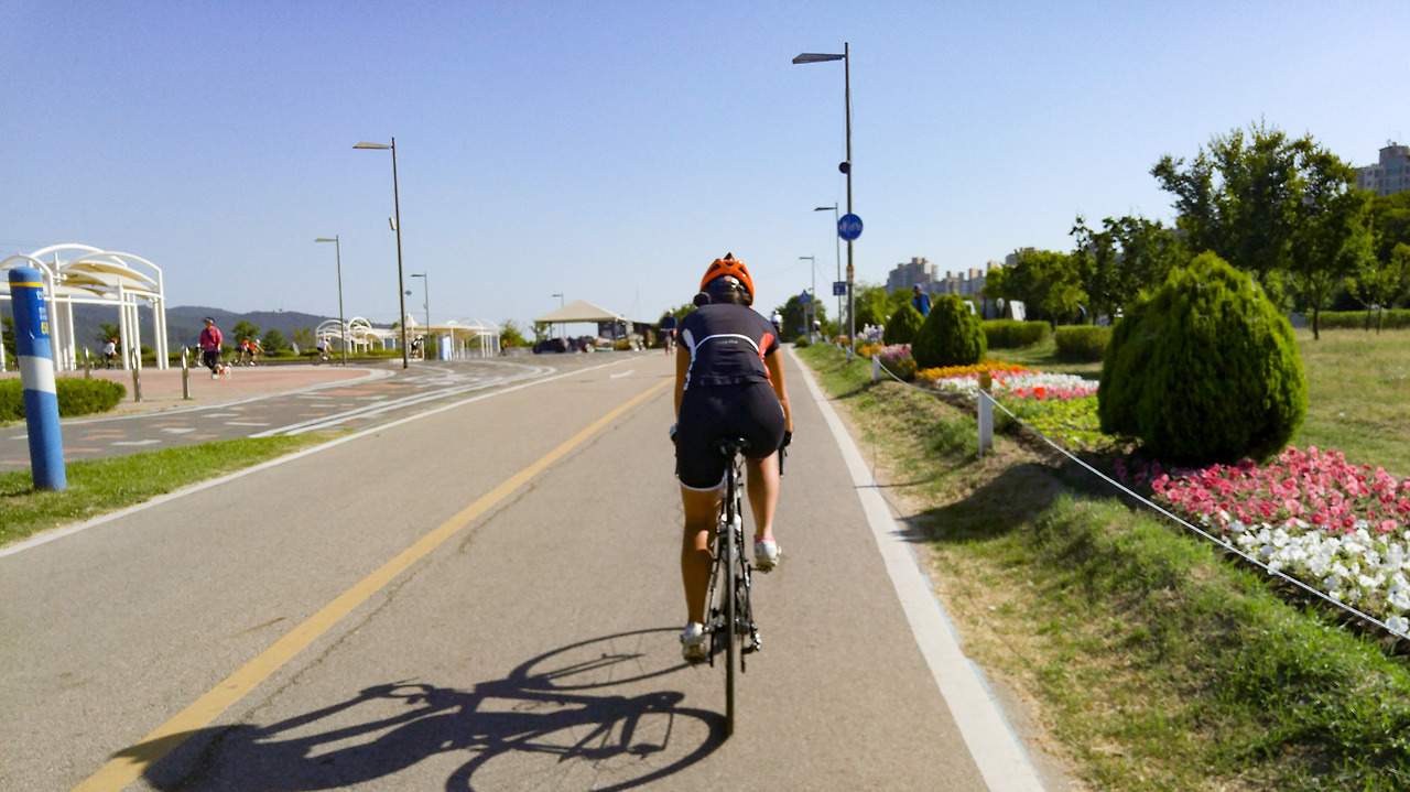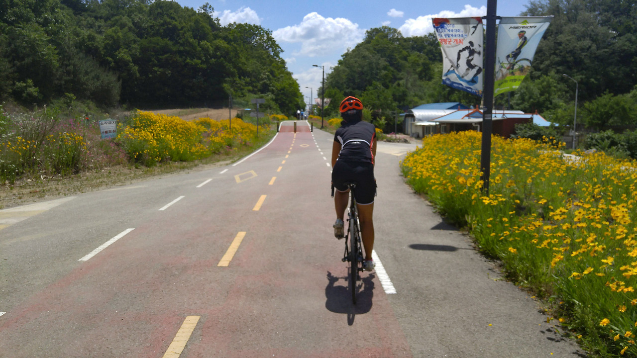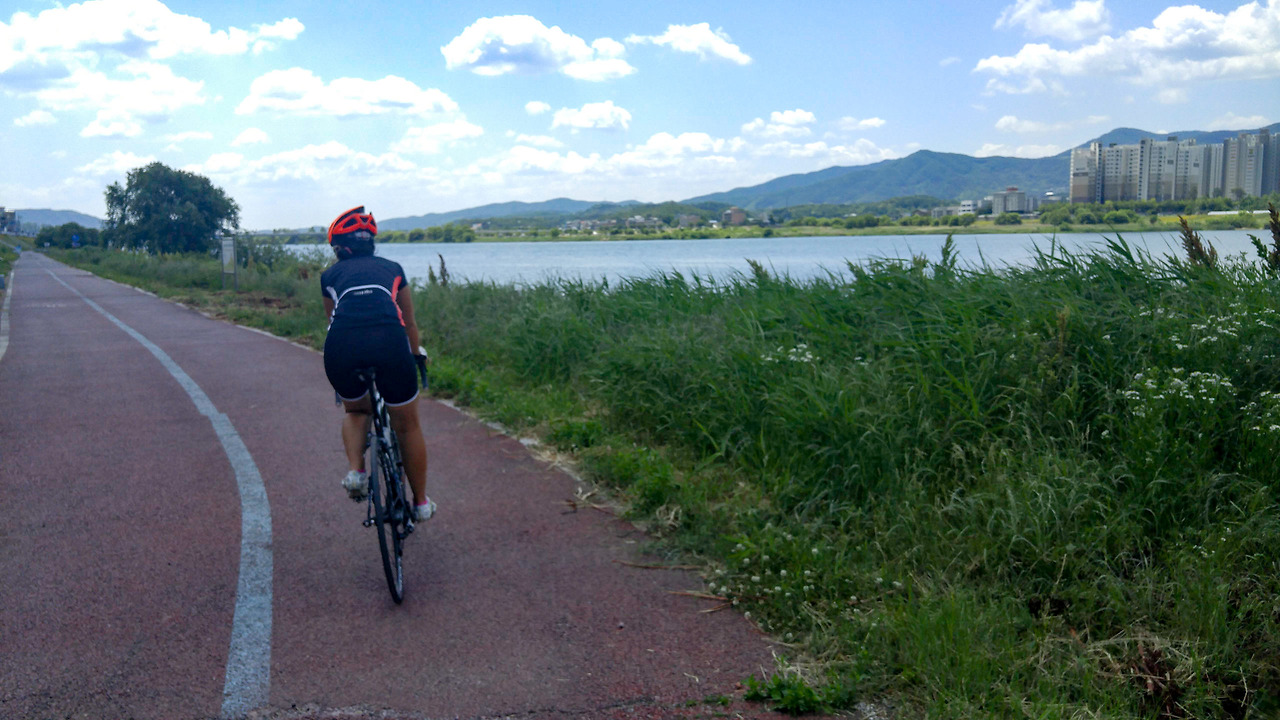 안 와본 사이에 자전거길 일부를 새로 포장해놨다. 노면이 좋은 길이 쭉쭉 뻗어있으니 좋다.