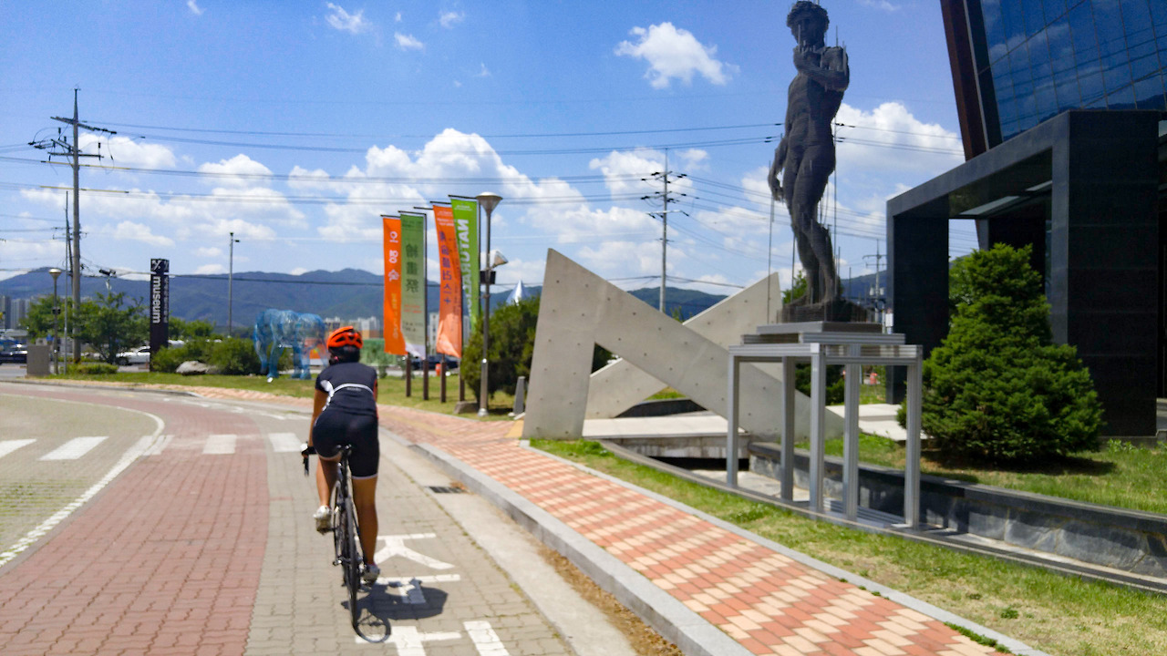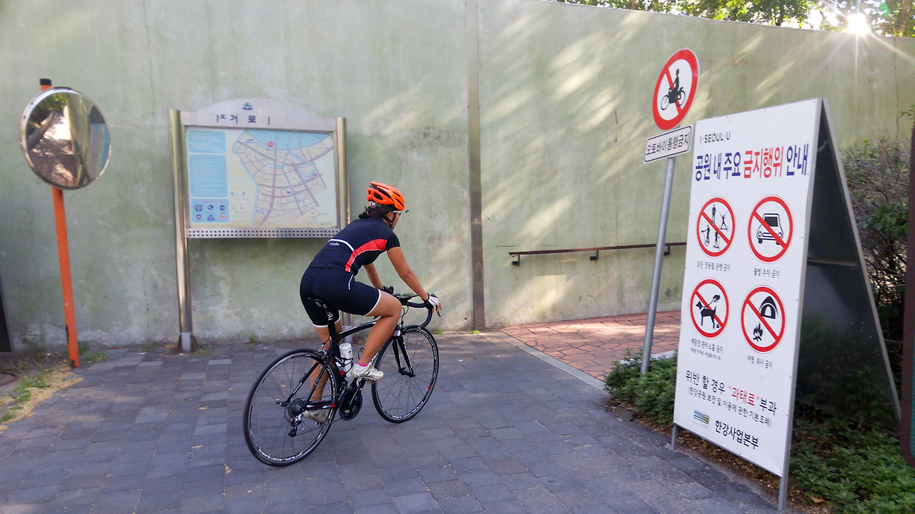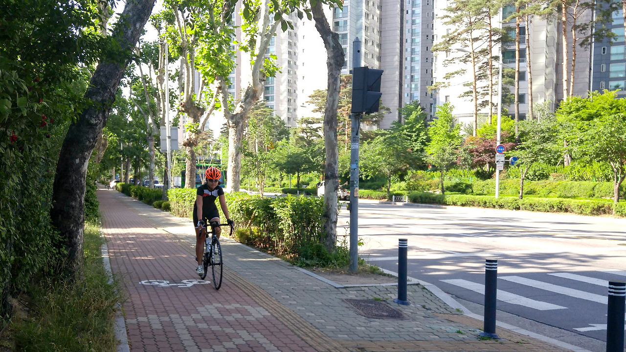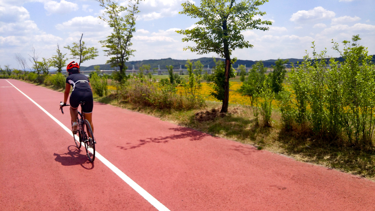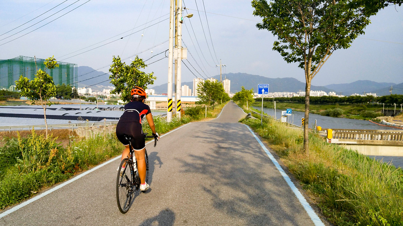 안 와본 사이에 자전거길 일부를 새로 포장해놨다. 노면이 좋은 길이 쭉쭉 뻗어있으니 좋다.
