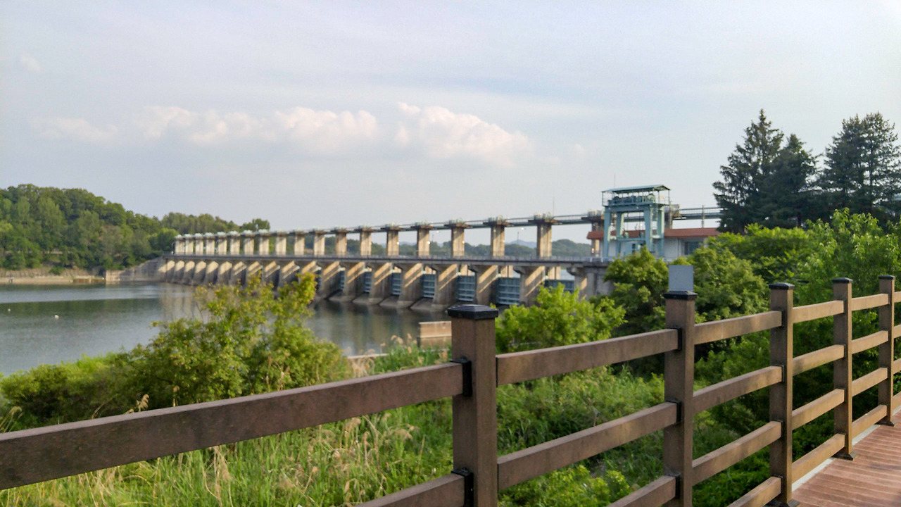 충주댐의 보조댐인 조정지댐이 나타났다. 남한강 자전거 도로는 원래 조정지댐을 건너서 목행교까지 시 외곽을 빙 둘러간다. 충주댐까지 가볼 생각이라면 원래 길대로 목행교로 가면 되지만 우린 시내로 바로 가야 하니 조정지댐을 건너지 않는다.