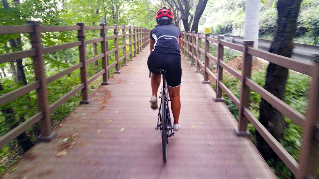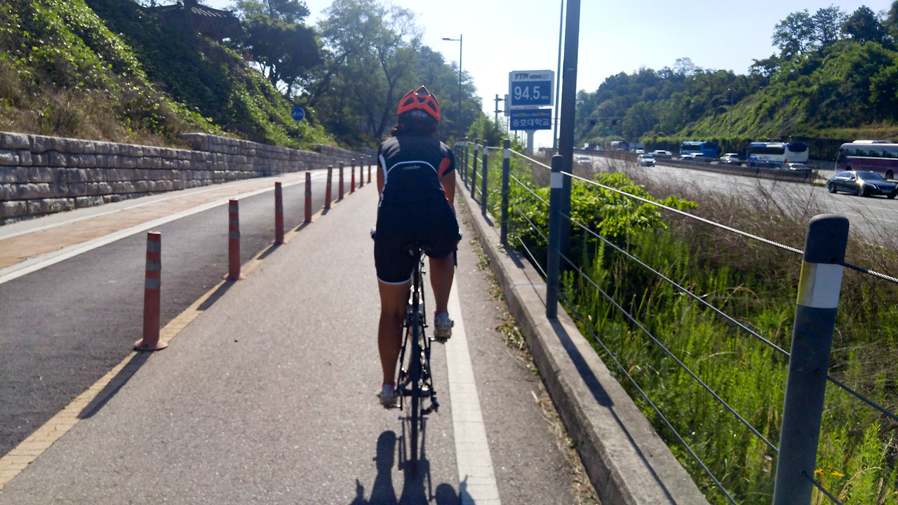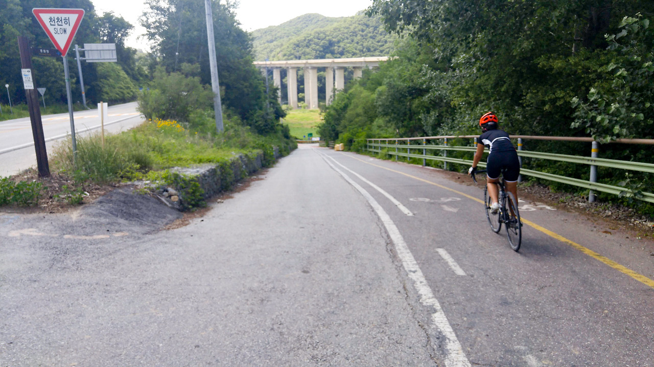 서울을 벗어나는 관문인 암사고개를 넘어간다. 별거 아닌 언덕이지만 은근히 힘들다. 옆의 차도는 주말을 맞아 서울을 빠져나가는 차량 행렬이 길게 늘어서있다.