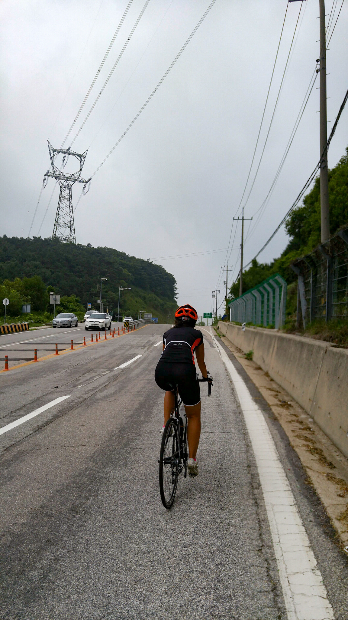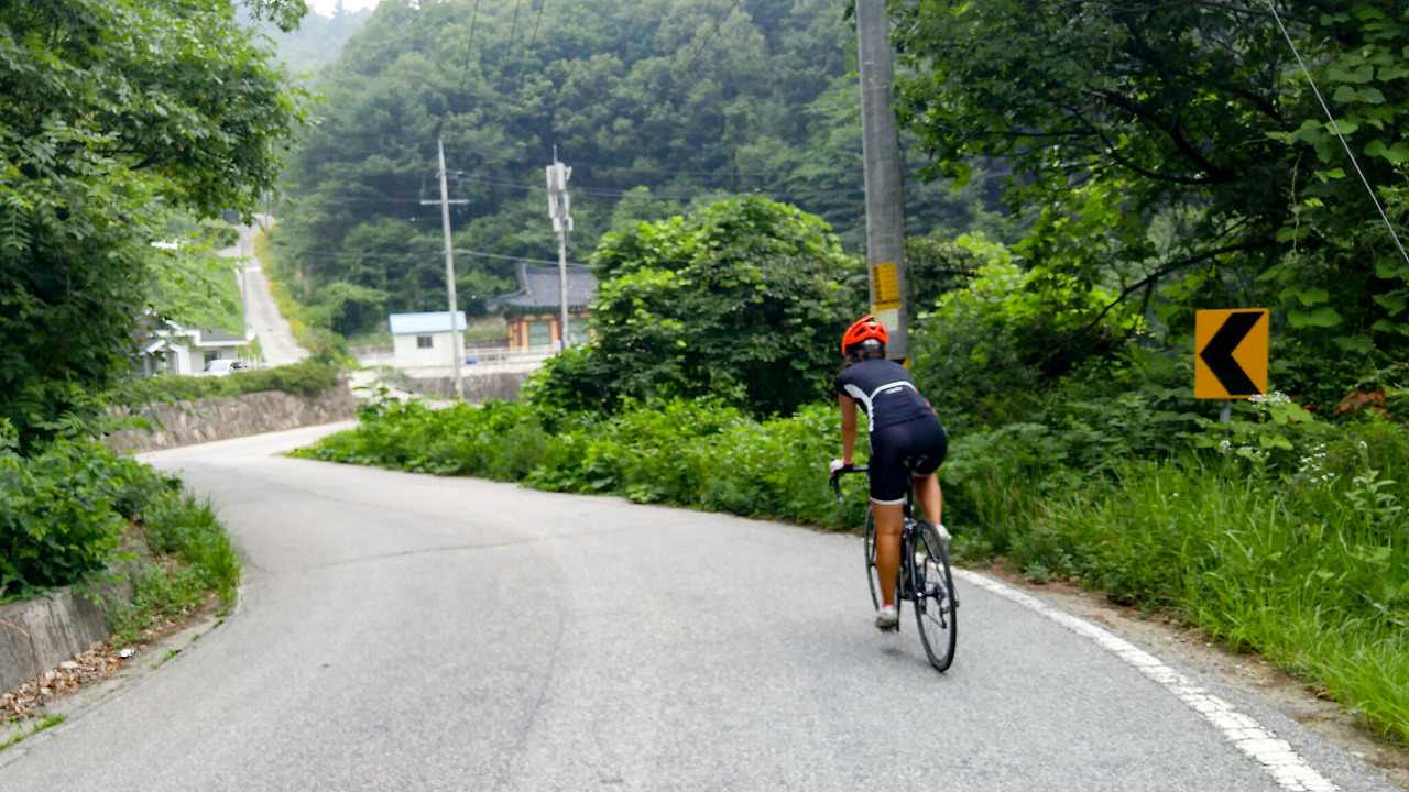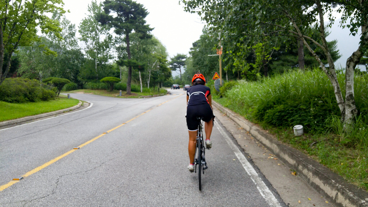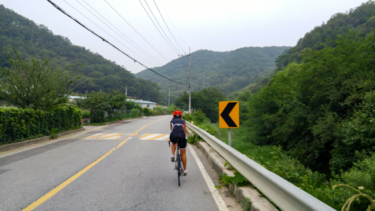 프리스틴밸리 정문을 통과해서 한우재 고개 정상으로 빠져나오면 바로 내리막길이다. 쭉 내려간 다음에 5고개 중 가장 길고 높은 선어치를 올라가야 한다.
