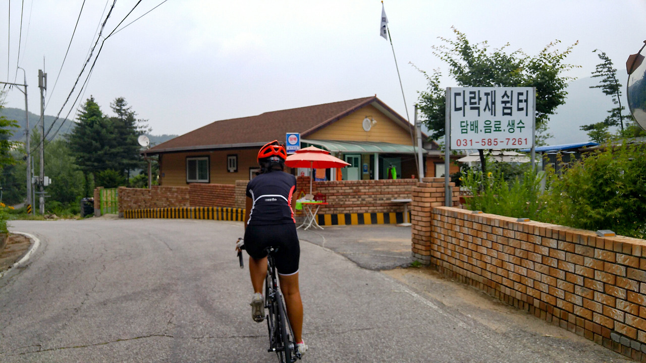 서울-춘천(양양) 고속도로 밑으로 통과해서 유턴하듯이 오른쪽으로 돌아가면 다락재가 시작된다. 경사도 완만하고 해발 고도도 낮기 때문에 5개 고개 중에 가장 쉬운 곳이다.