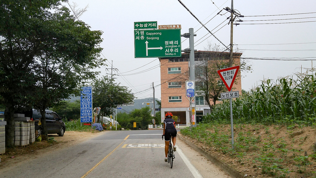 서후고개를 내려가면 정배리의 정배 삼거리가 나온다. 여기서 별 생각 없이 우회전했더니 옥천면 표지판이 나온다. 아! 실수... 다시 돌아간다. 이대로 계속 가면 동부5고개의 단축판인 동부3고개 코스(벚고개-서후고개-농다치)가 된다.