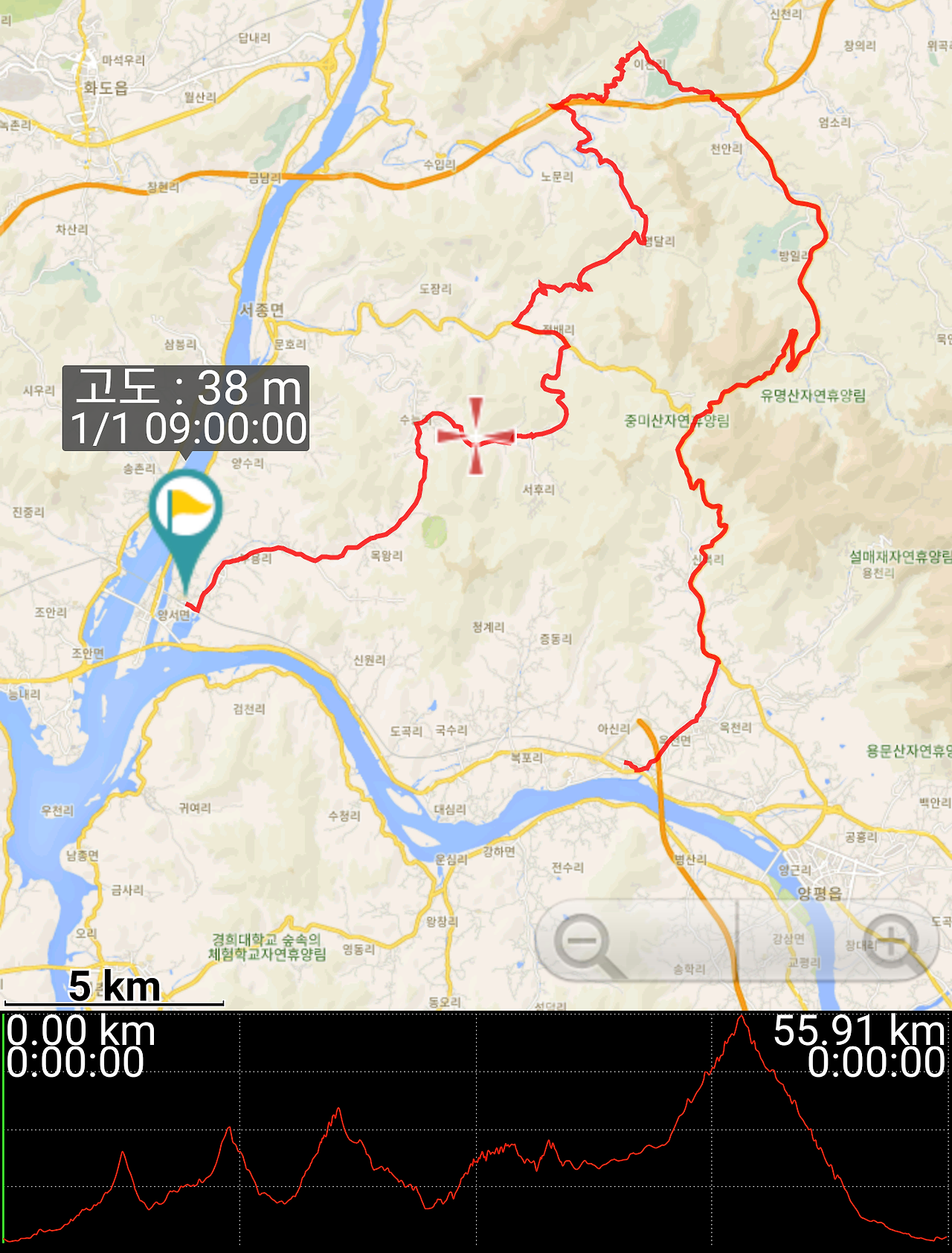 어쨌든 배는 채웠으니 슬슬 출발한다. 양수역에서 도로를 따라서 동쪽으로 철길 밑으로 빠져나가면 본격적인 출발이다.