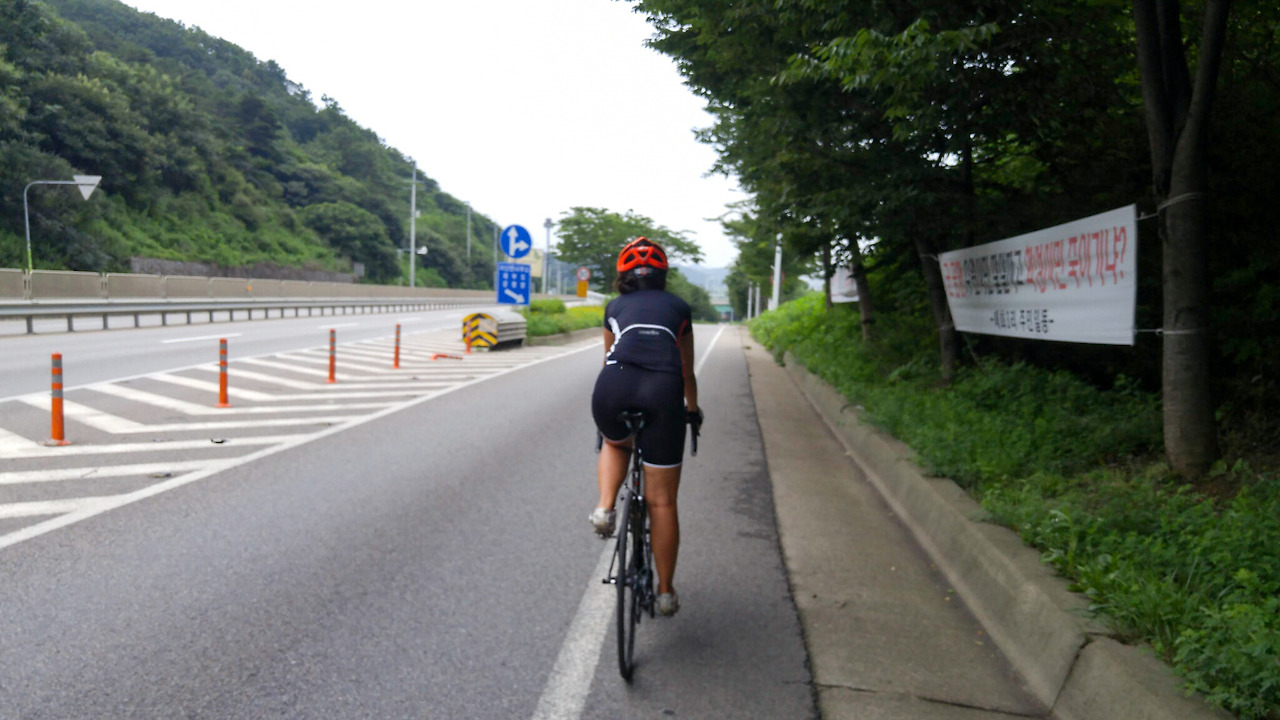 차도와 분리된 자전거길이 있지만 차도 거의 안다니는 길이라 차도로 달린다. 역시나 자전거길은 엄청난 잡초 덩굴로 군데군데 완전히 묻혀 있었다.