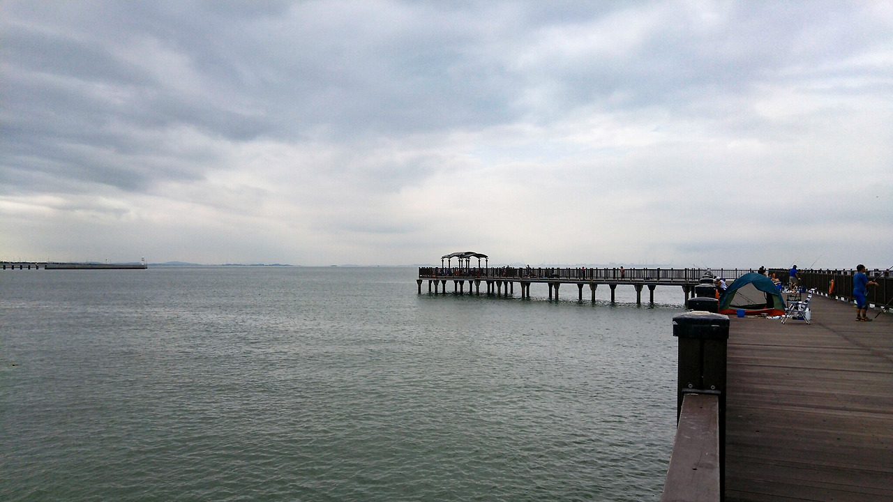 바다 위 낚시터는 이렇게 데크를 만들어 바다 위에서 낚시할 수 있도록 해놓은 시설이다. 저 끝의 지붕 아래에 밴치가 있지만 당연히 낚시꾼들이 점령하고 있다.