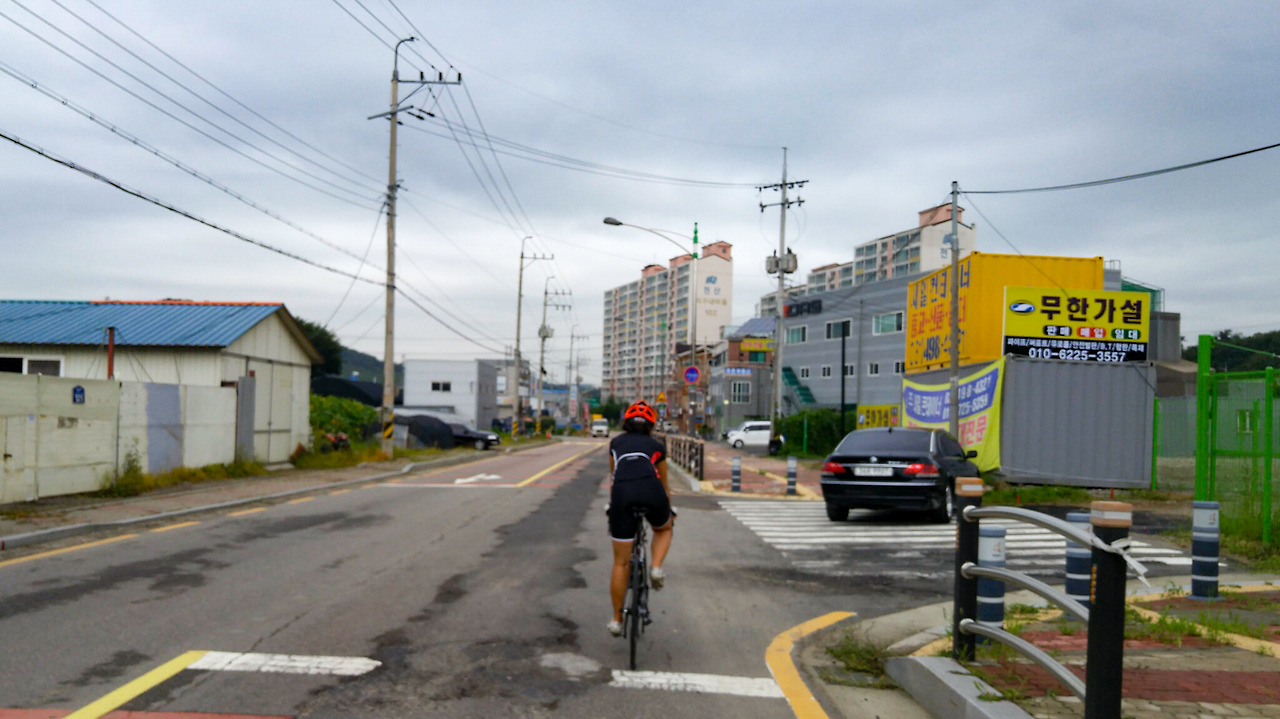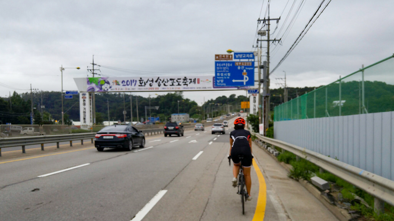 313번 도로는 중앙분리대까지 있는 상당히 큰 도로이지만 도로 옆의 갓길을 넉넉하게 자전거도로로 꾸며놓았다.