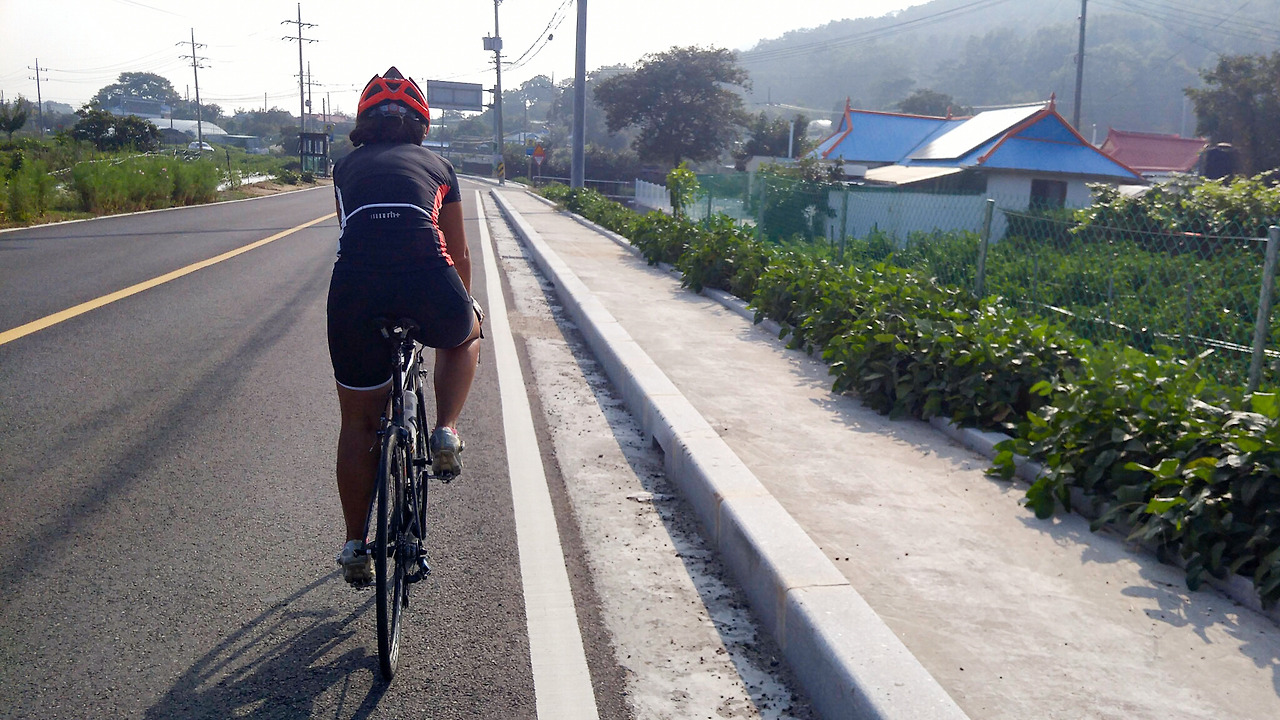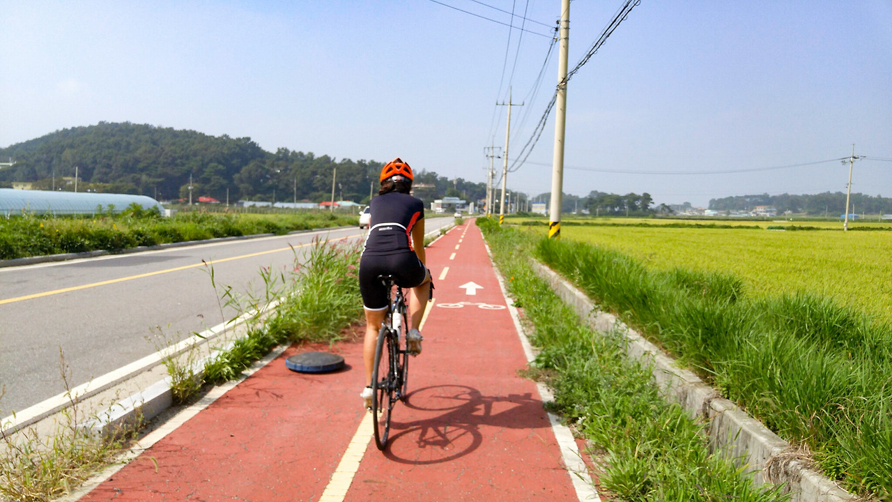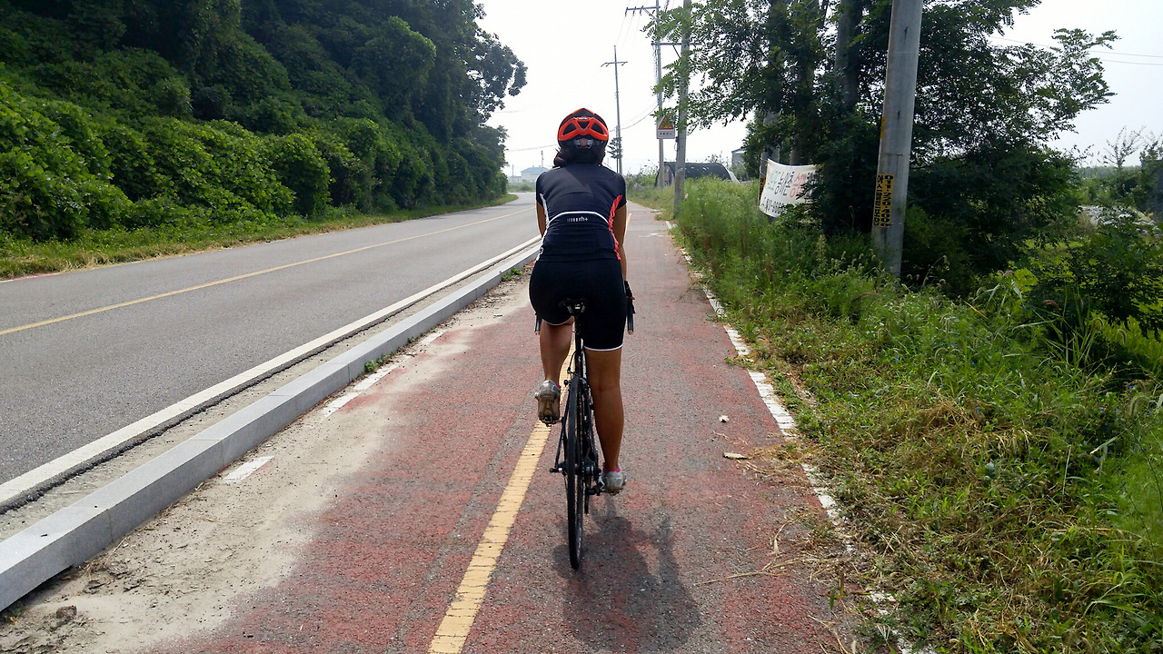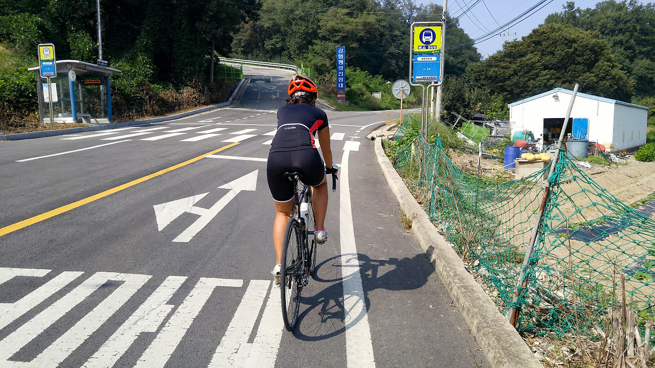 보문사 입구에서 조금 가다 보면 자전거길이 나타난다. 양방향 자전거길이 한쪽에만 있으니 반시계 방향으로 달린 것이다.